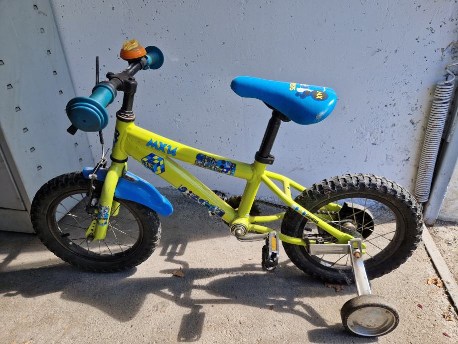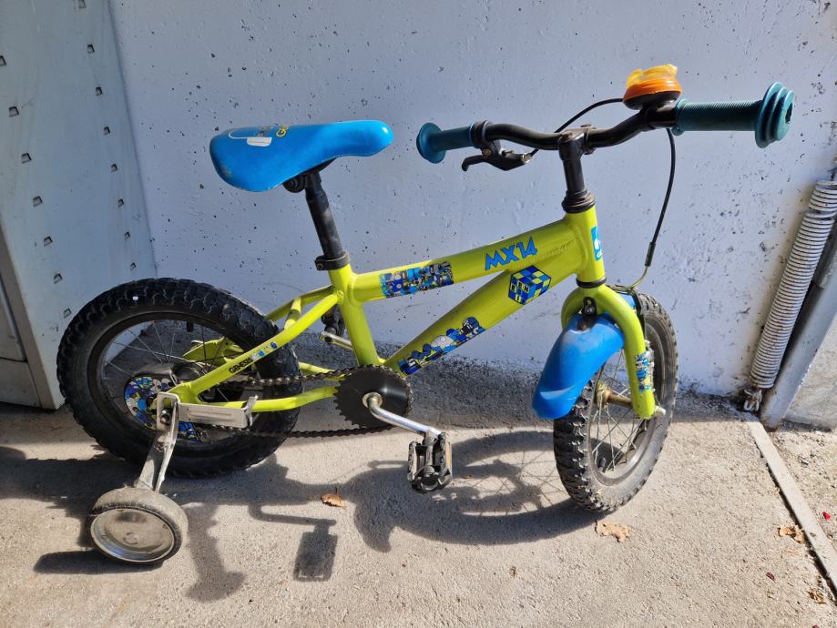Potpuno ispravan dječji bicikl Genesis, kotači veličine 14", prednja V-brake kočnica, pomoćni kotači.