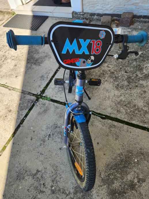 Dječji bicikl austrijskog branda Genesis prodajemo jer smo ga prerasli. Kotači veličine 18", bez brzina, prednja ručna, stražnja nožna kočnica - otprilike za dijete 4-7 godina starosti. Ima i zadnji blatobran koji nije prikazan na slikama.