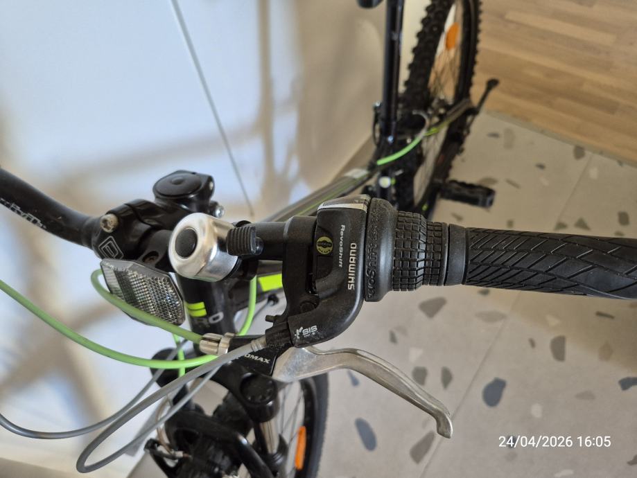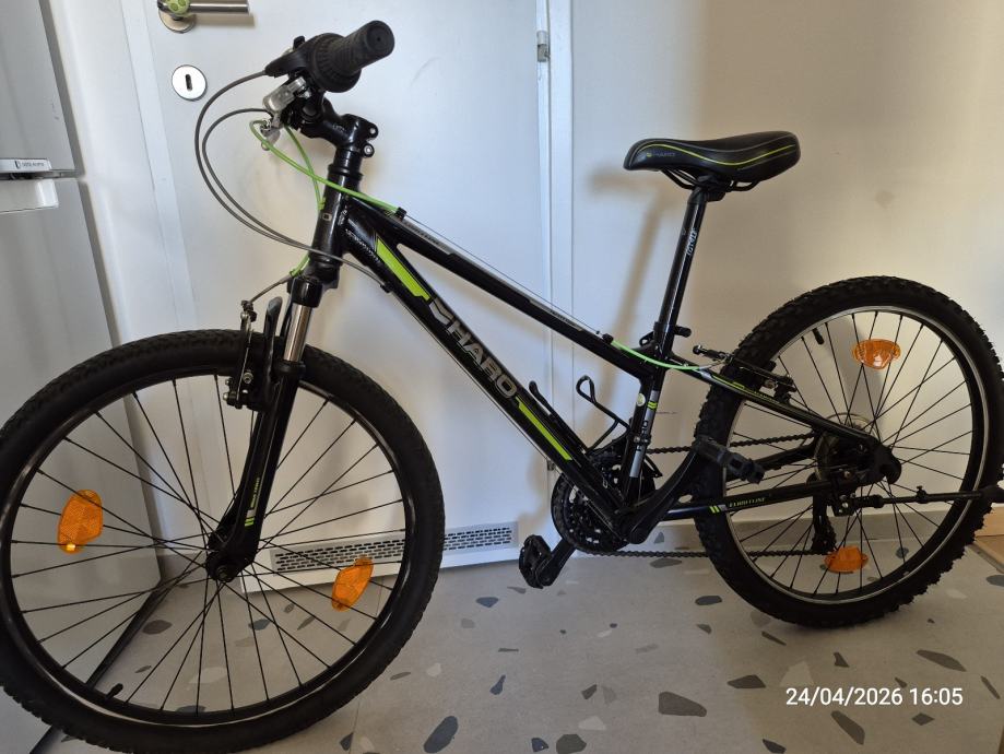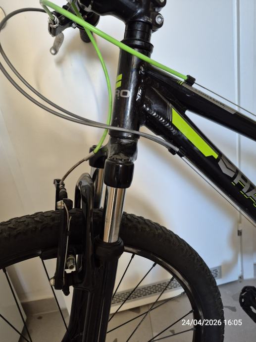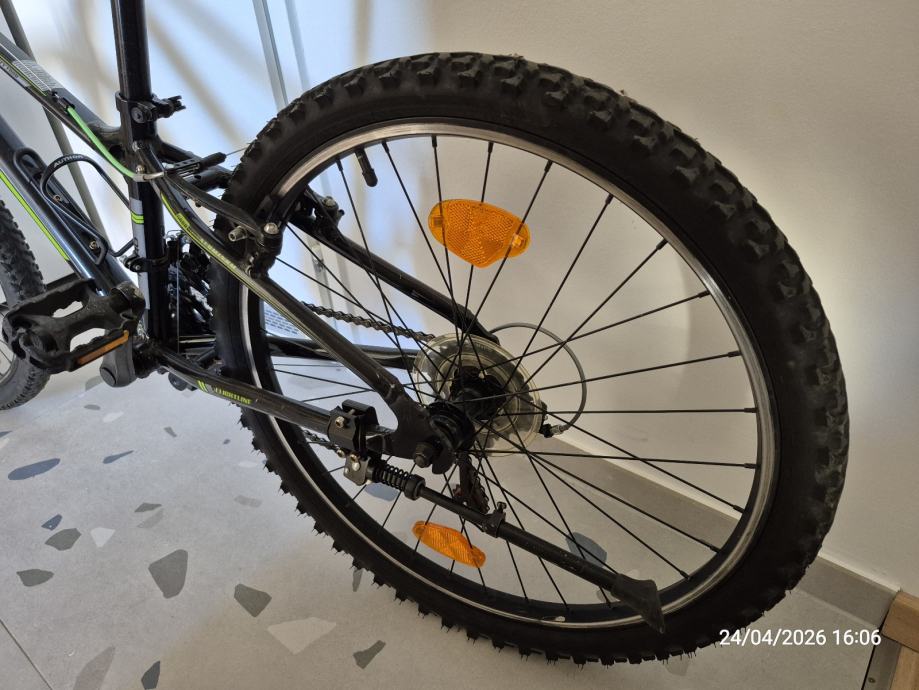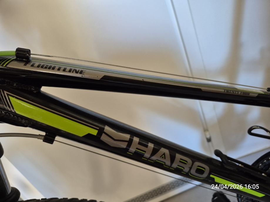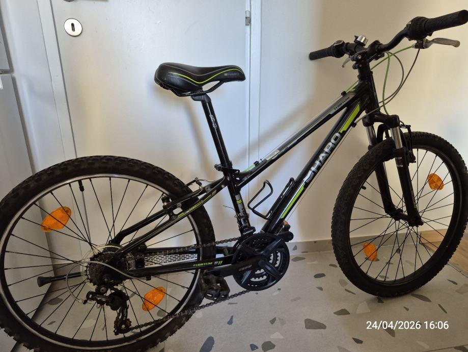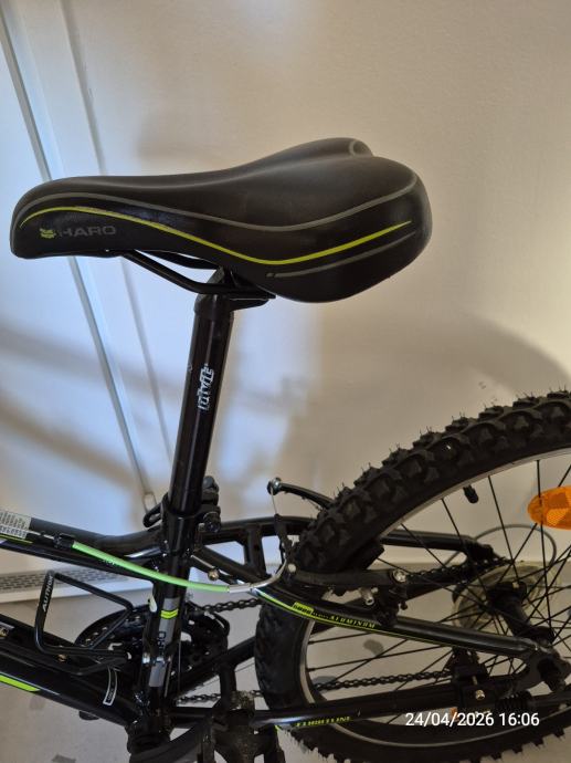 Prodajem dječji bicikl HARO Flightline, veličina 24. Bicikl je crne boje sa zelenim i sivim detaljima, opremljen Shimano Tourney mjenjačem brzina i prednjom amortizacijskom vilicom.
