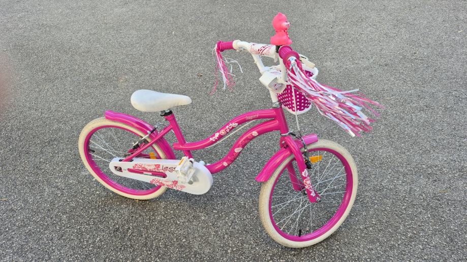 Prodajem Legoni Pina 20" dječji bicikl u ružičastoj boji s bijelim gumama.