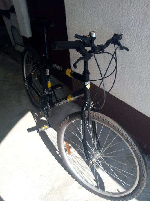 Prodajem rabljeni dječji bicikl marke "Masiff" s kotačima veličine 26 inča. Bicikl je crne boje s žutim detaljima, idealan za stariju djecu i tinejdžere. Unatoč korištenju, bicikl je u dobrom stanju i spreman za nove avanture.