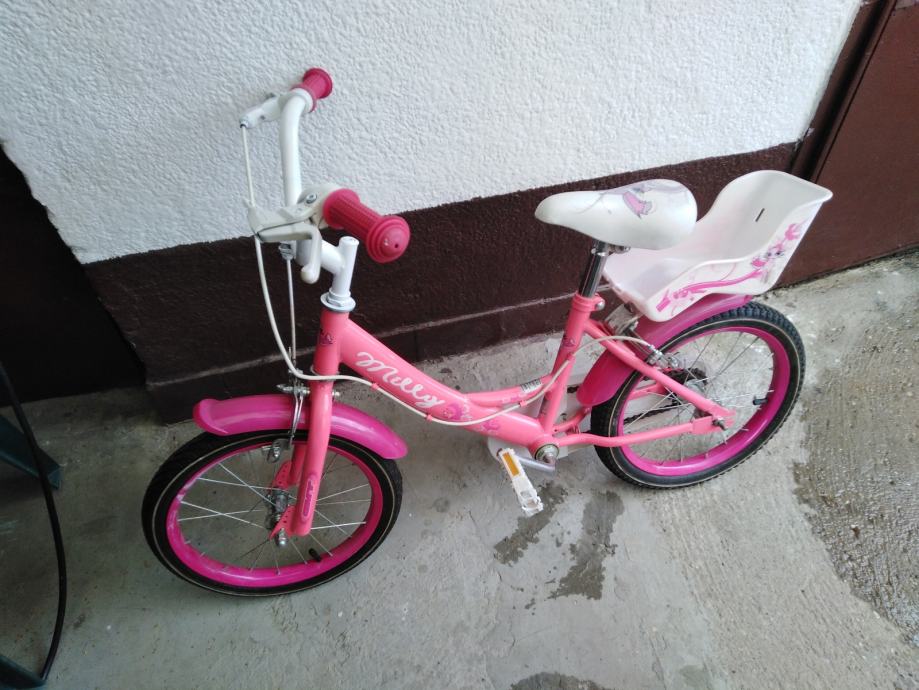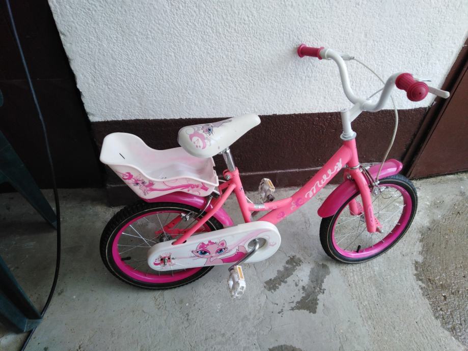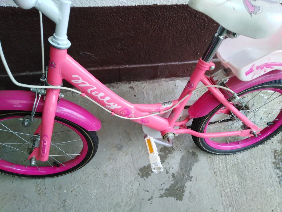 Prodajem rabljeni dječji bicikl Milly s kotačima veličine 16 inča u ružičastoj boji. Bicikl je idealan za male princeze s lijepim cvjetnim detaljima i bijelim sjedalom. Unatoč korištenju, bicikl je u dobrom stanju i spreman za nove avanture.