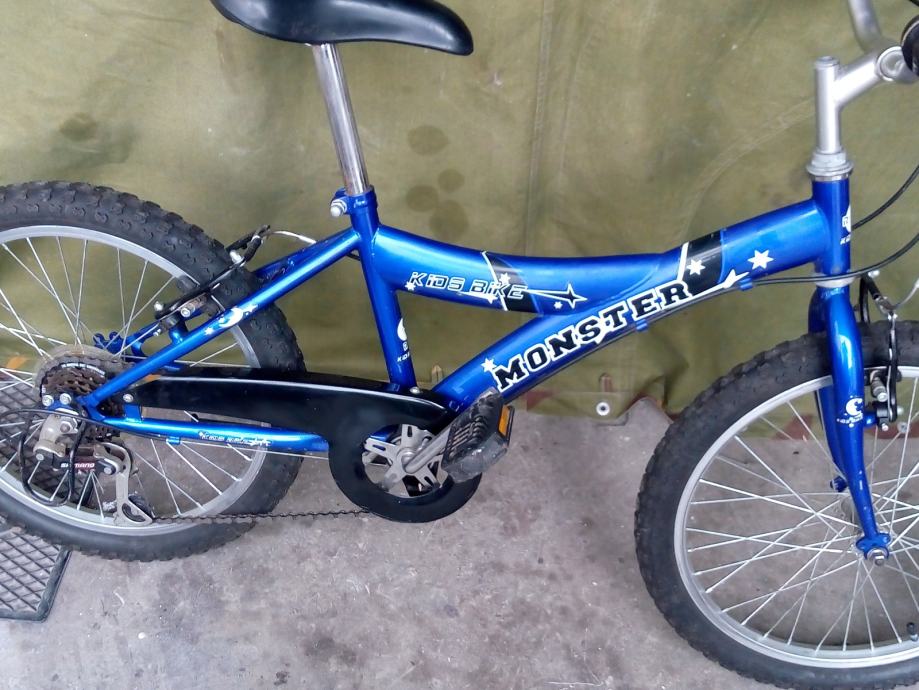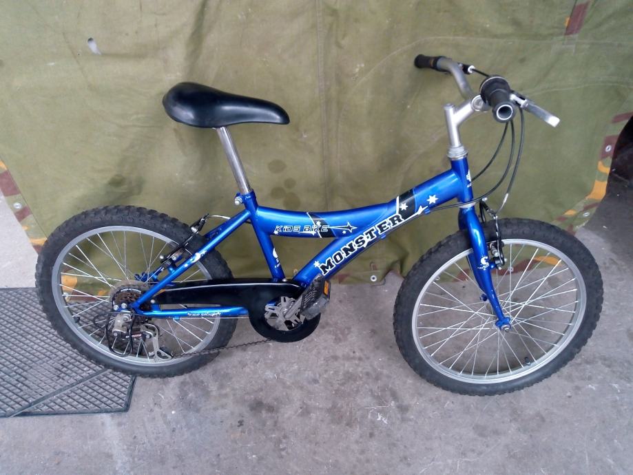 Prodajem dječji bicikl Monster s kotačima od 20 inča u plavoj boji. Bicikl ima čelični okvir s prepoznatljivim Monster dizajnom i zvjezdicama, 6 brzina, crno sjedište podesivo po visini te crne gumene pedale. Kormilo je također podesivo, a bicikl je opremljen prednjom i stražnjom kočnicom. Funkcionalan i spreman za vožnju.