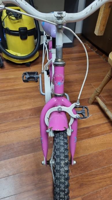 Bicikl 16" kotači, za djevojčice, u kompletu pomoćni kotači, vrlo malo korišten, ispravan.