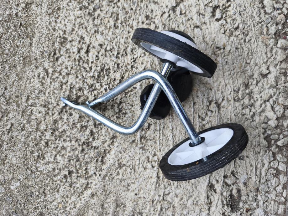 B-twin dječji bicikl potpuno ispravan, ali sa vidljivim znakovima korištenja. Uz njega idu originalni pomoćni kotačići koji se vrlo lako skidaju i stavljaju. Također poklanjam i štitnike za laktove i koljena za friške male vozače