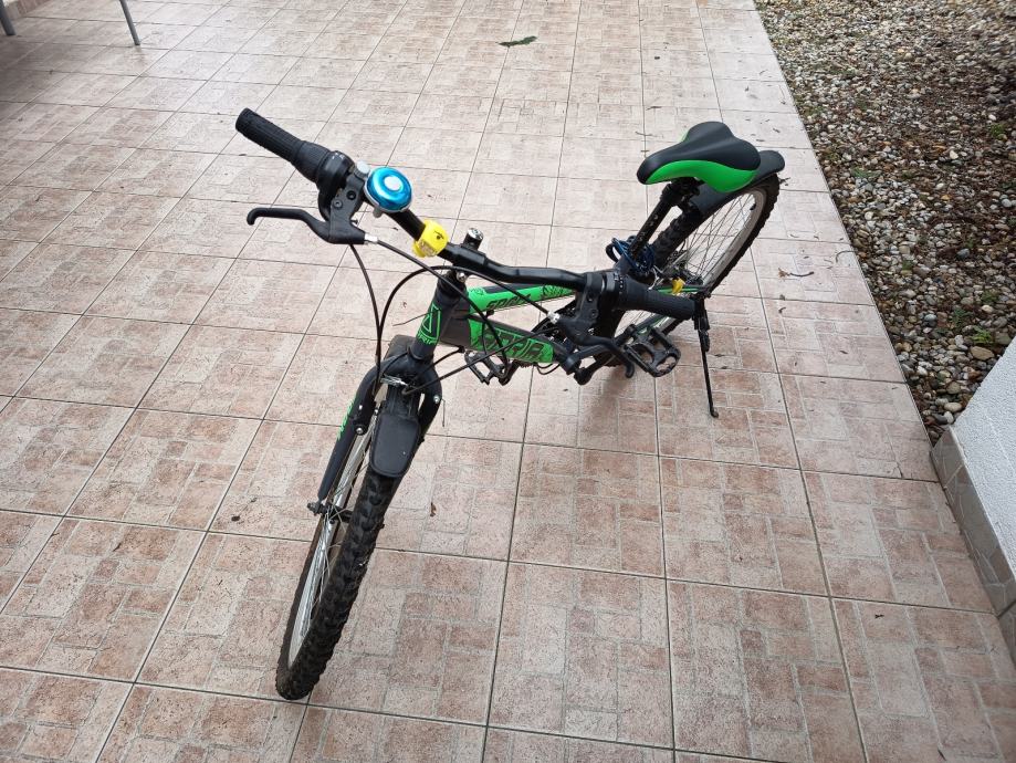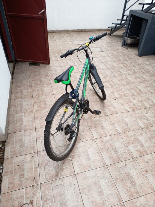 Prodajem rabljeni dječji bicikl s kotačima od 24 inča. Bicikl je zeleno-crne boje s mjenjačem brzina, idealan za djecu školske dobi. U dobrom je stanju i spreman za nove avanture.