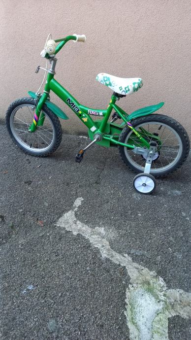Prodajem dječji bicikl, kotači 16", u voznom stanju, sa pomoćnim kotačima, cijena je 20 eura.