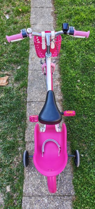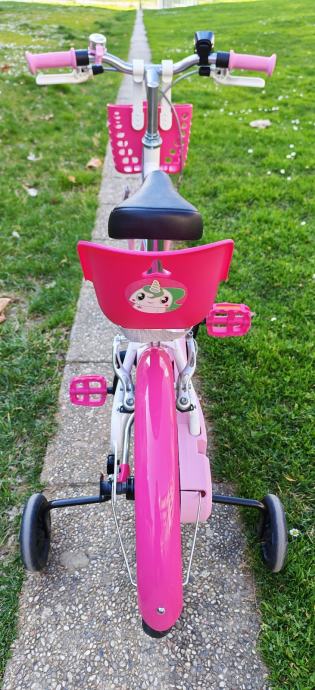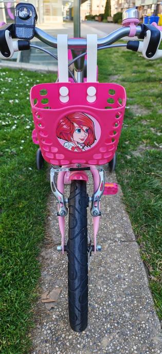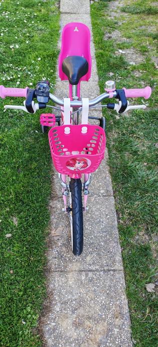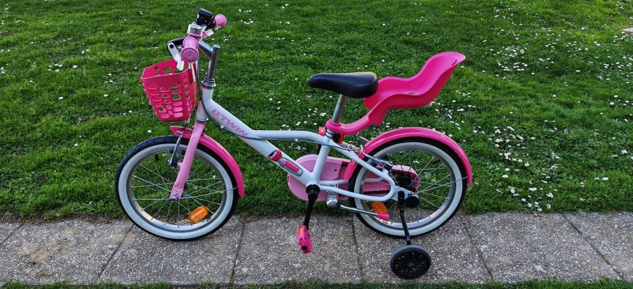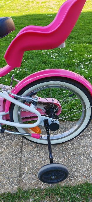 Dječji bicikl 16" sa pomoćnim kotačima, košarom i sjedalicom za lutke. Malo korišten i izuzetno očuvan! Moguća korekcija cijene.