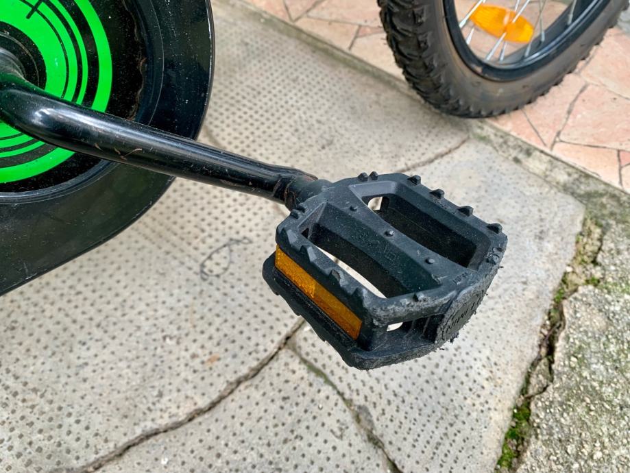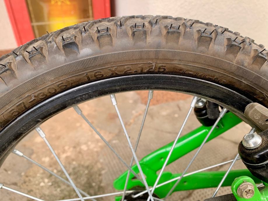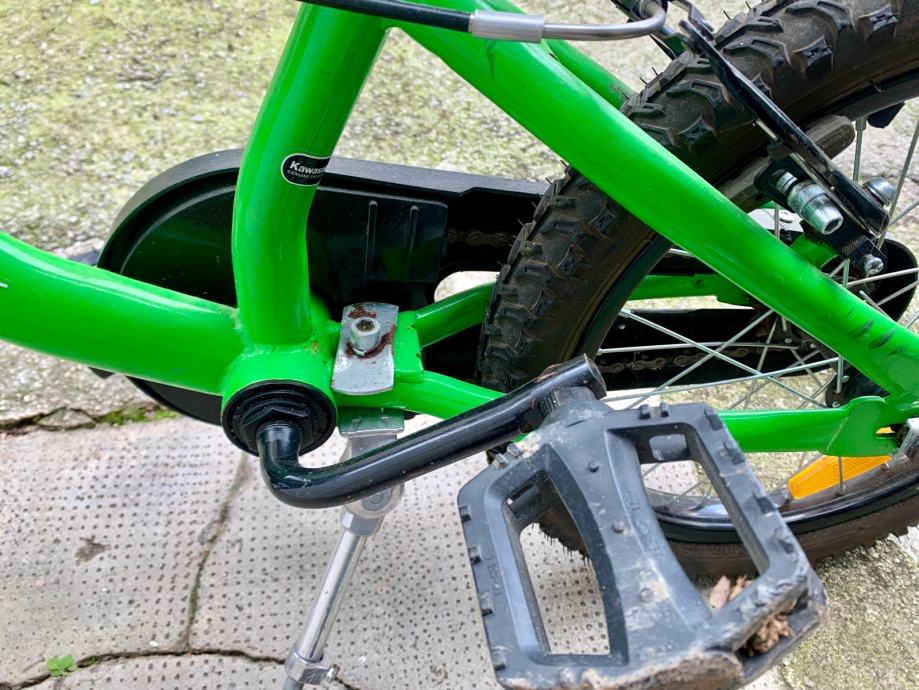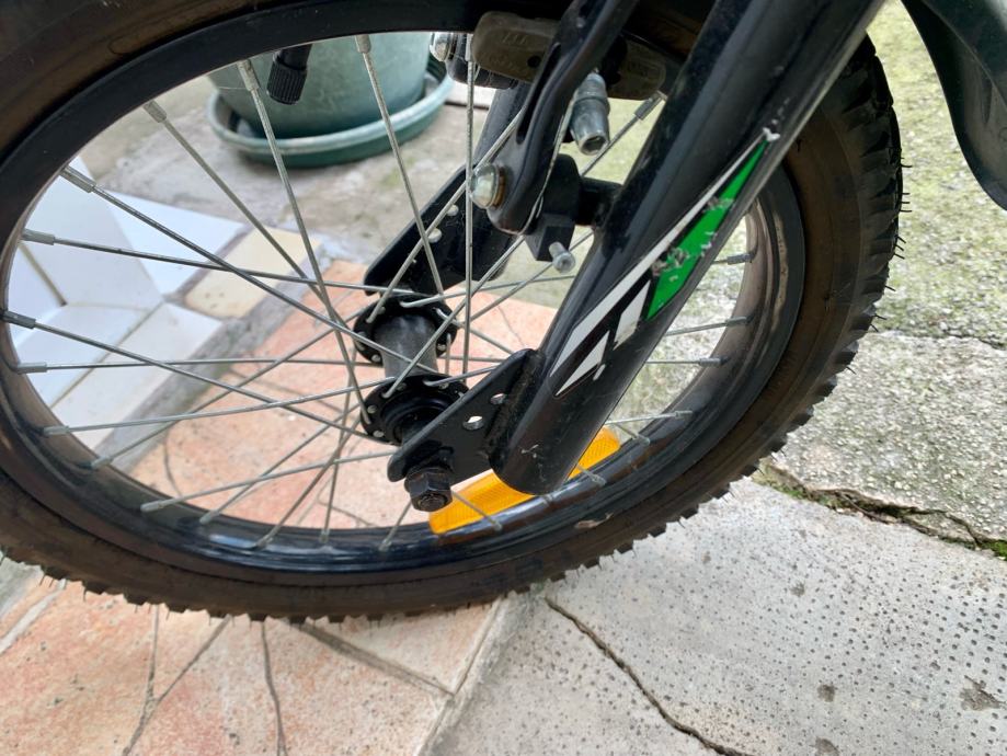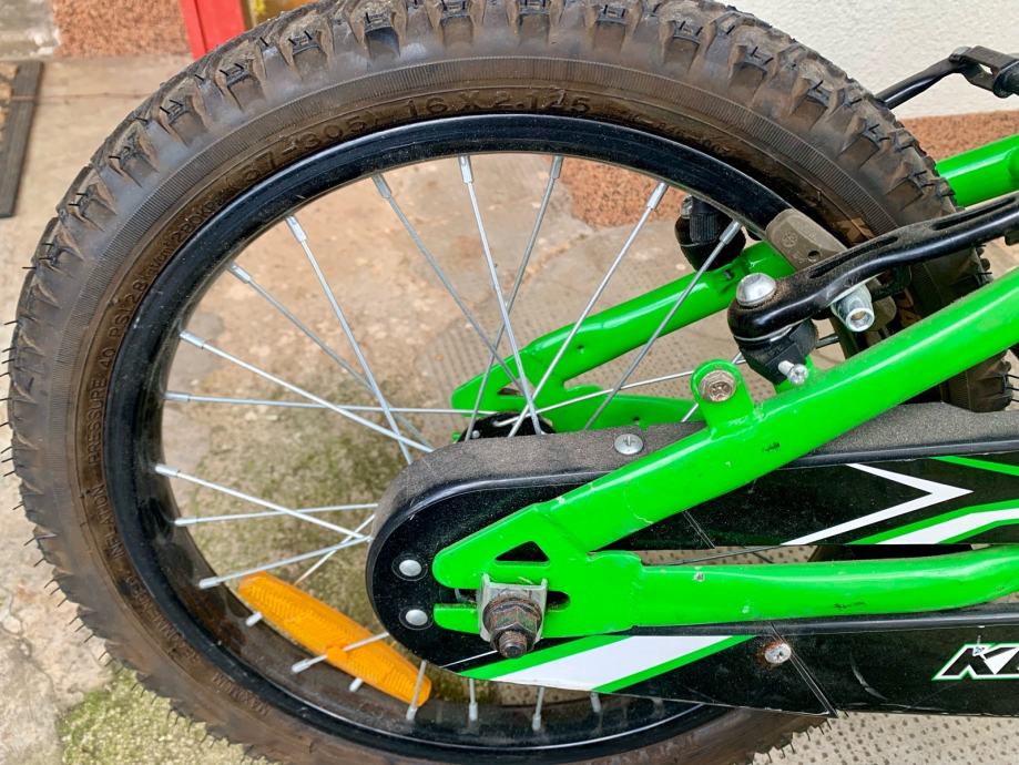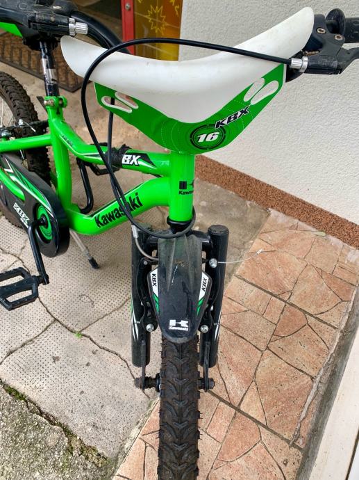 Prodajem dječji bicikl Kawasaki KBX u zelenoj boji. Radi se o modelu s kotačima veličine 16 inča (16x2.125) te blatobranima sprijeda i straga. Sjedalo i upravljač su podesivi po visini.