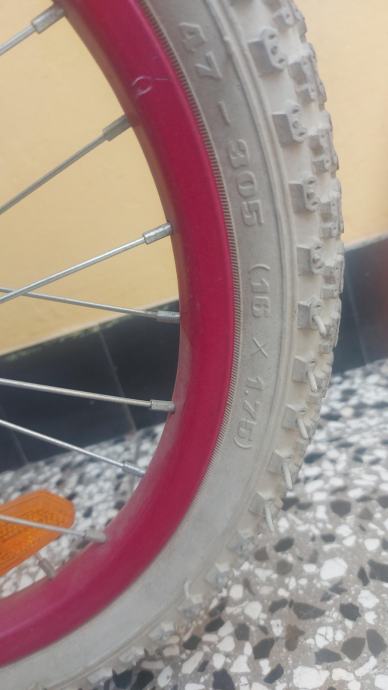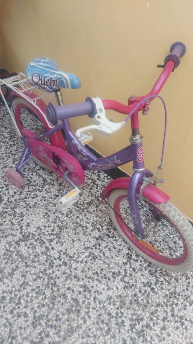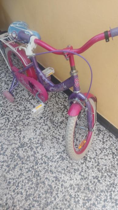 Rabljeni dječji bicikl 16 cola. Ima pomoćna kola. Potrebno promijeniti gume.