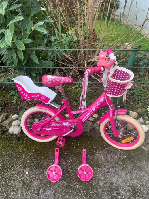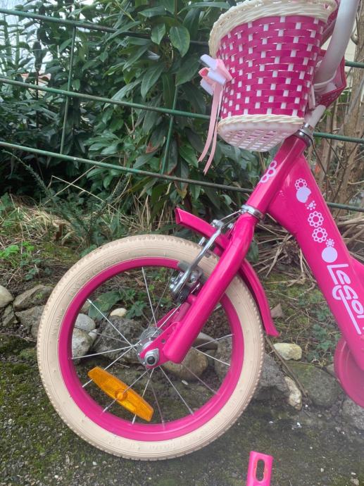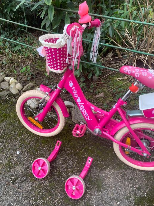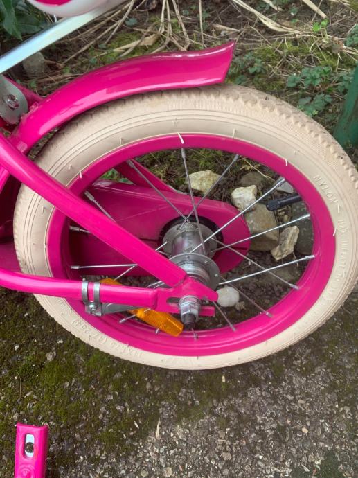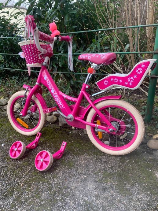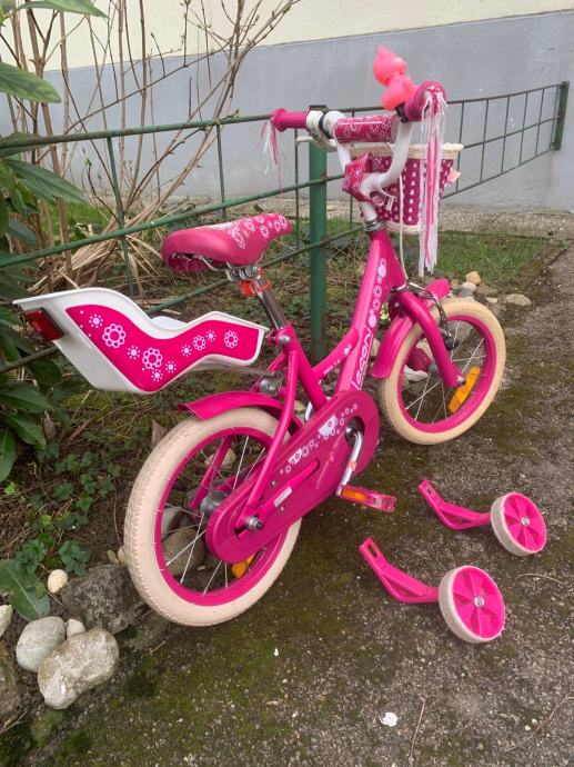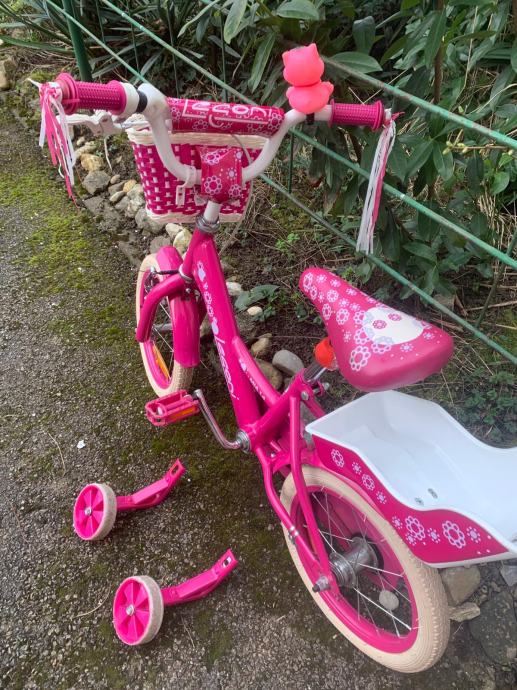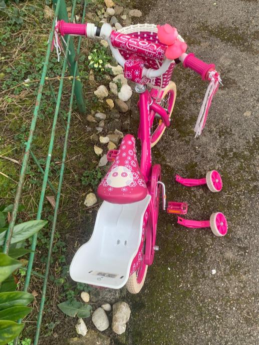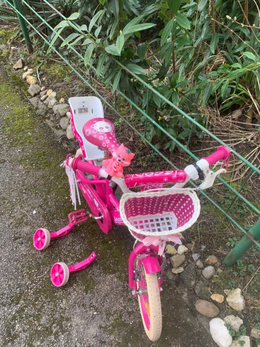 Prodajem rozi bicikl za djevojčice sa pomoćnim kotačima.