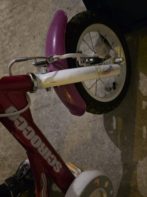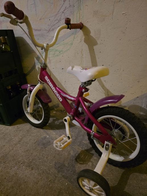 bicikl Scirocco 14”, sa pomocnim kotacima, jako malo koristen (dosla je zima pa ga je djevojcica prerasla). U odlicnom stanju, par ogrebotina ima po rami, zadnje dvije slike.