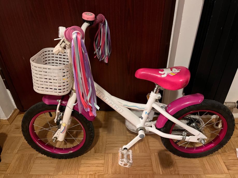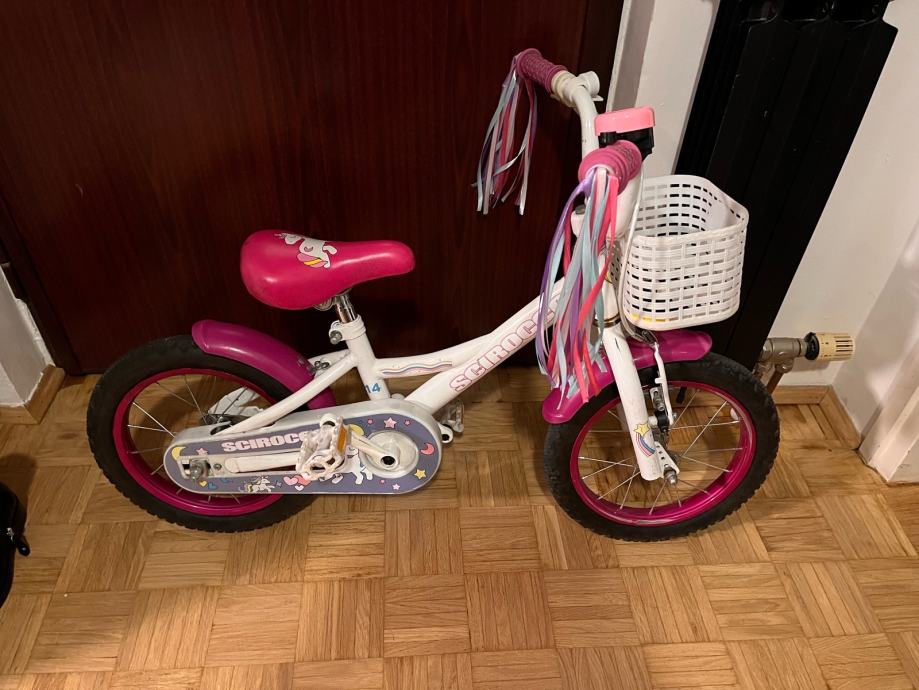 Bicikl Scirocco Luna 14”, sa pomoćnim kotačima, korišten kao što se vidi na slikama, ispravan i spreman za nove vožnje.