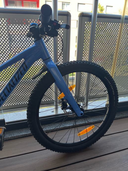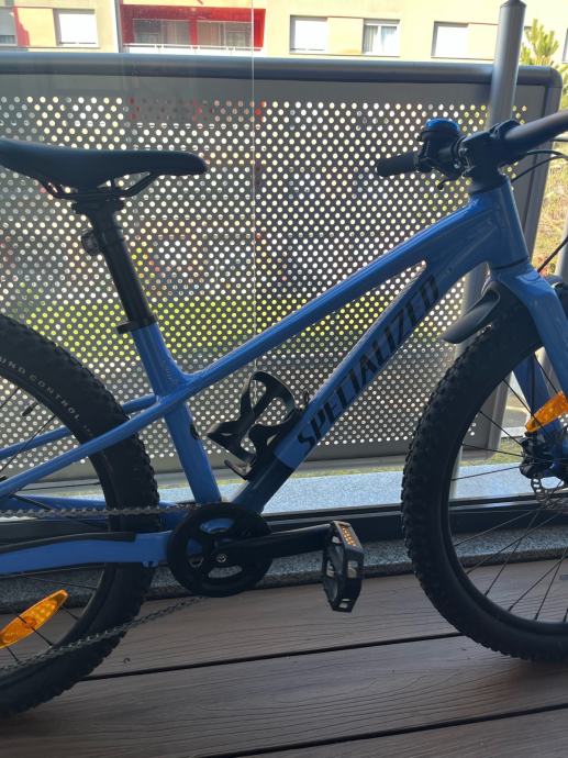 Prodajem dječji bicikl renomiranog brenda SPECIALIZED s kotačima veličine 24 inča. Bicikl je u plavoj boji s crnim detaljima, opremljen hidrauličnim disk kočnicama i kvalitetnim komponentama. Okvir je aluminijski, lagan i izdržljiv, što ga čini pogodnim za djecu koja žele ozbiljnije voziti. Bicikl ima višebrzinski mjenjač i široke Ground Control gume prikladne za različite terene. Kupljen u dućanu u Sloveniji u 03/2025, odlično je održavan i spreman za vožnju.