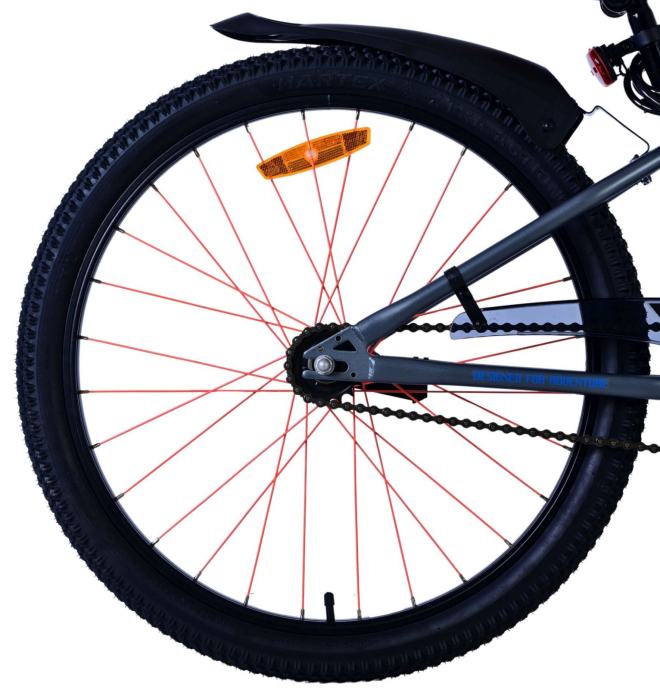Ovaj bicikl Rocky za dječake od 24 inča savršen je izbor za mlade avanturiste koji žele spojiti udobnost i stil. S robusnim okvirom i prekrasnim izgledom, ovaj bicikl omogućuje ugodnu vožnju, dok 7 stupnjeva prijenosa osigurava da vaše dijete mijenja brzine bez napora.Žbice u boji daju biciklu sportski i jedinstven izgled, dok sjedalo podesivo po visini osigurava da bicikl raste s vašim djetetom. Sigurnost je na prvom mjestu: bicikl je opremljen reflektorima u kotačima i svjetlima, tako da ste uvijek dobro vidljivi, čak i u mraku. Dvije ručne kočnice nude dodatnu kontrolu, tako da se vaše dijete uvijek može sigurno zaustaviti.Praktični stalak osigurava da je bicikl uvijek stabilan kada je neko vrijeme parkiran. Štoviše, bicikl dolazi s zasebnim lokotom, tako da ga možete sigurno ostaviti kad niste u blizini.S ovim biciklom za dječake Rocky od 24 inča, najmanji biciklisti ne samo da mogu uživati u udobnoj vožnji, već i samouvjereno krenuti na cestu.
