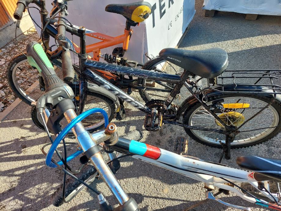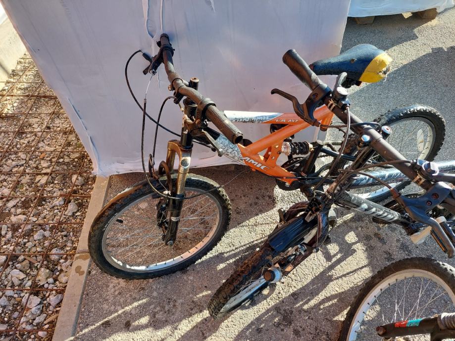 Bijeli bicikl bio do nedavno u pogonu ostali već duže vrijeme stoje, na narančastom treba promijenit gume i spojit sajle!