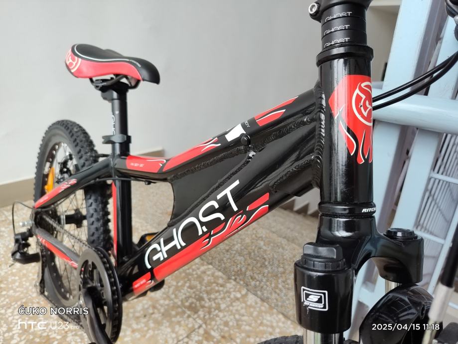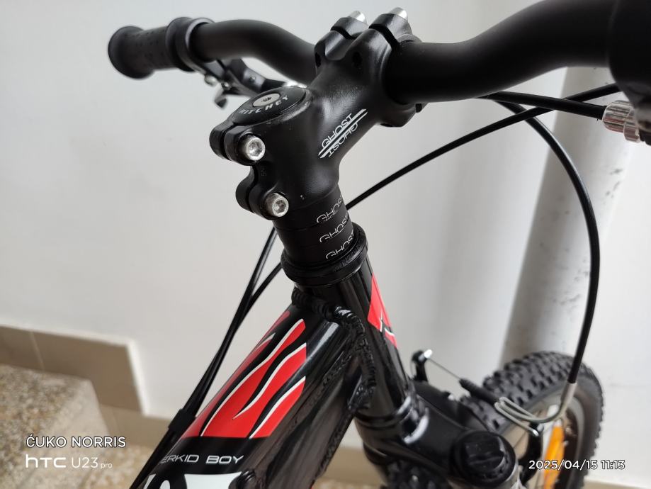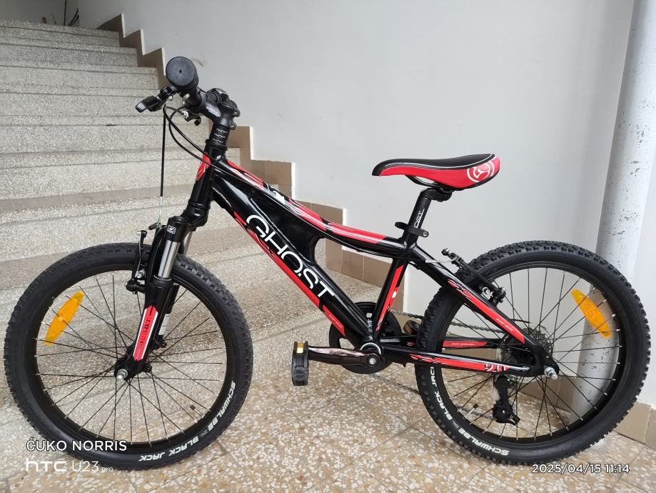 KVALITETAN DJEČJI MTB BICIKL, U STANJU NOVOG, ZNALCI ZNAJU! ALUMINIJSKA DIRT RAMA 11 INČA ANATOMSKA ZA ODLIKAŠE DOBI OD 5-11 GODINA, ALUMINIJSKI KOTAČI 20 COLA X RIMS SA DUPLOM STIJENKOM, SCHWALBE GUME NOVE , SR SUNTOUR POGON,SR SUNTOUR VILICA SA PODEŠAVANJEM KRUTOSTI , KATEDIOPTERI, OBRUČI DW, SHIMANO TX BRZINE ,SHIMANO MJENJAČA, ŠIROKA GHOST VP LULA, V-BRAKE TEKTRO KOČNICE ALU, BUZIRI UZ RAMU, LEPTIR SPORT VOLAN, UDOBAN SIC,27.2, SIC GIANT ŠTANGA,ITD...