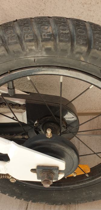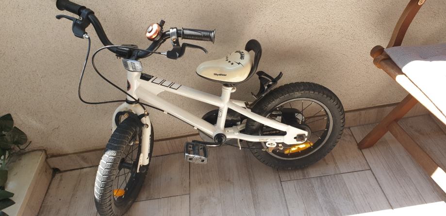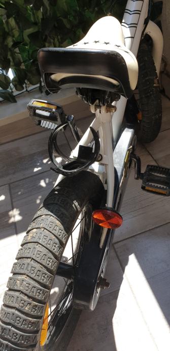 Odličan i kvalitetan dječji bicikl,vrlo stabilan, debele gume, ručne kočnice sprijeda i bubanj kočnica straga postavljene na volanu, držač za bocu, dimezije na slikama. Za djecu od 2 do 6 godina otprilike, na slikama je sjedalo u najnižem položaju a može se još dosta podignuti.Na slikama su dimenzije kotača i ostale mjere.