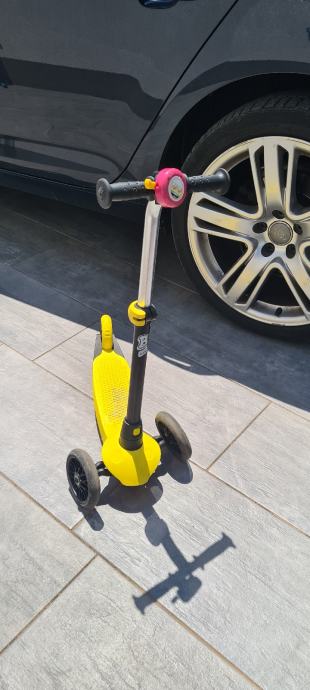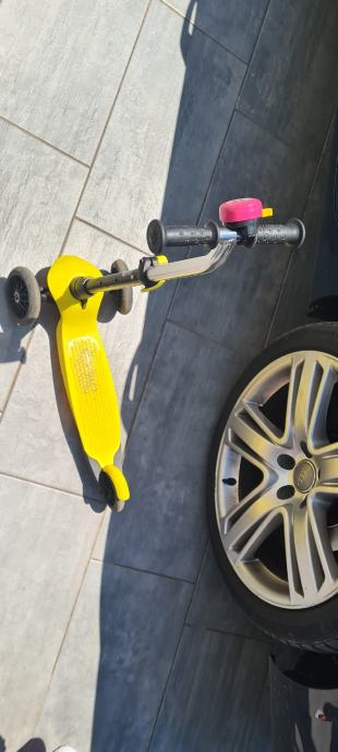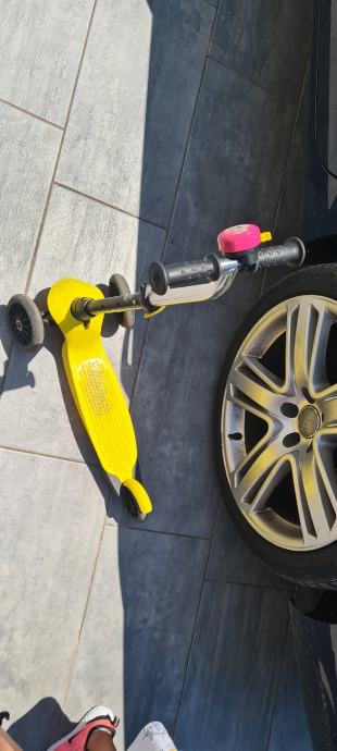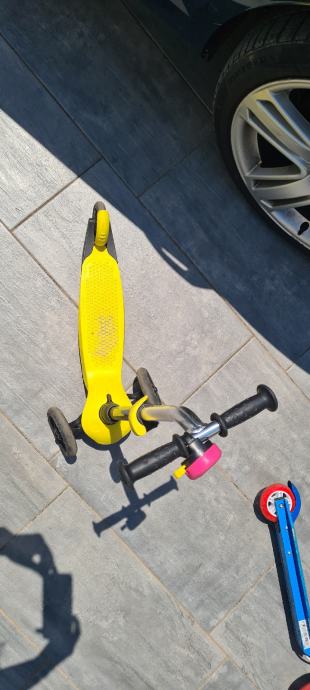 Dječji romobil iz Dechatlona, malo vožen,bez greske. Maska u zutoj boji se mjenja, moguce kupiti dr.boju u Dechatlonu -za promjeniti boju u rozu,plavu,zelenu...
