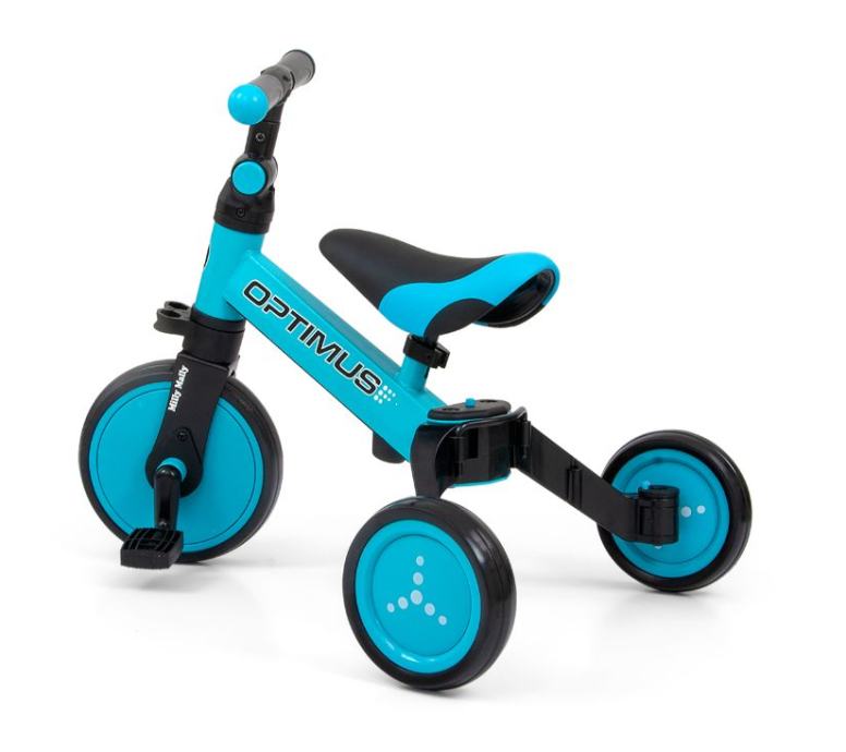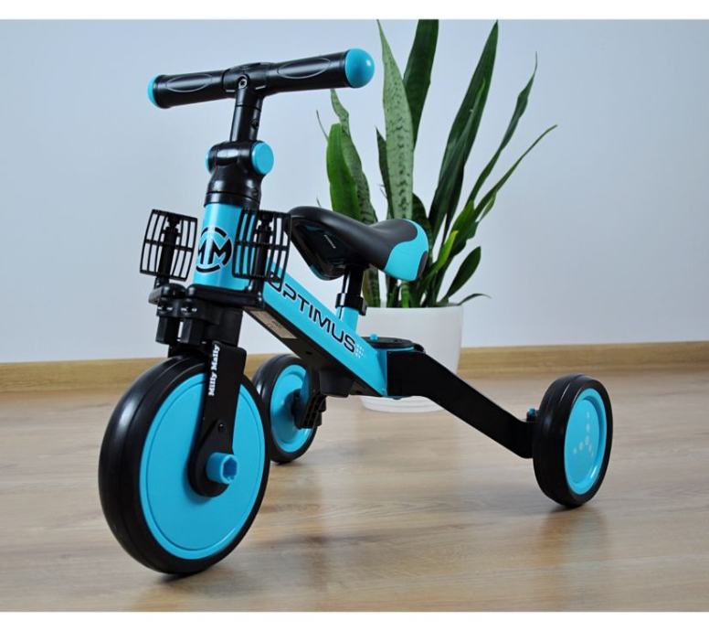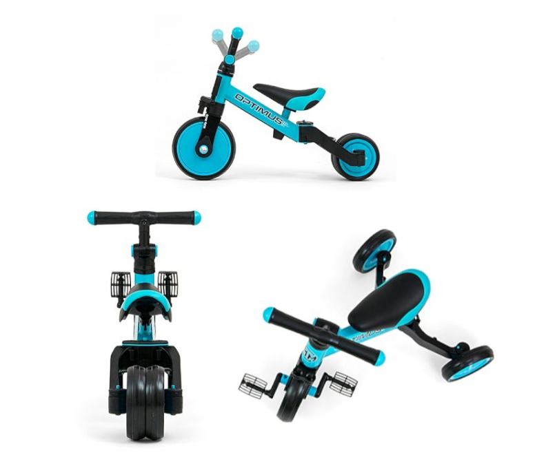 Optimus je dizajniran da postane jedan od najboljih izbora za prvo vozilo vašeg djeteta. Zahvaljujući stabilnoj konstrukciji na tri kotača, djetetu pruža odgovarajuću razinu sigurnosti i olakšava stjecanje novih vještina. Kada je dijete već savladalo osnove vožnje, možete mu dodati pedale ili ga promijeniti u klasični balance bicikl.