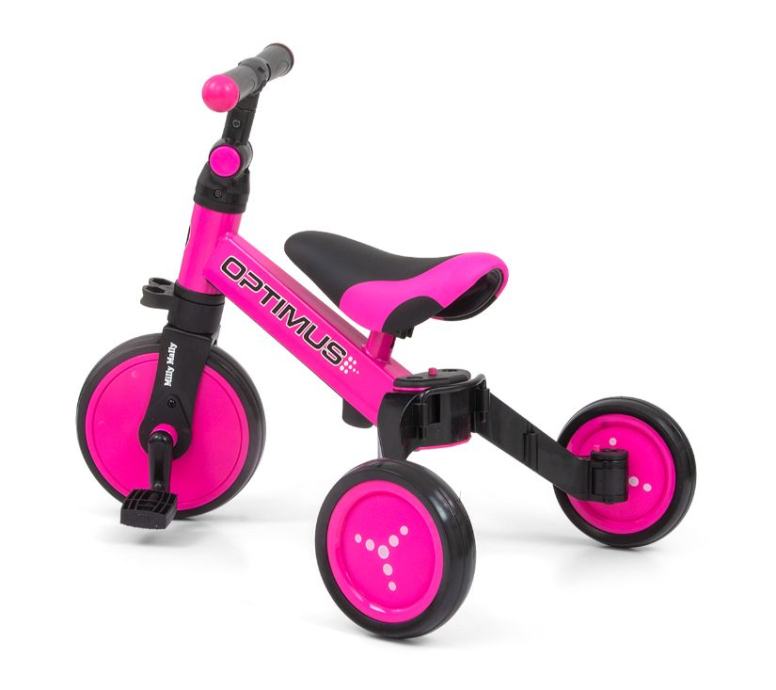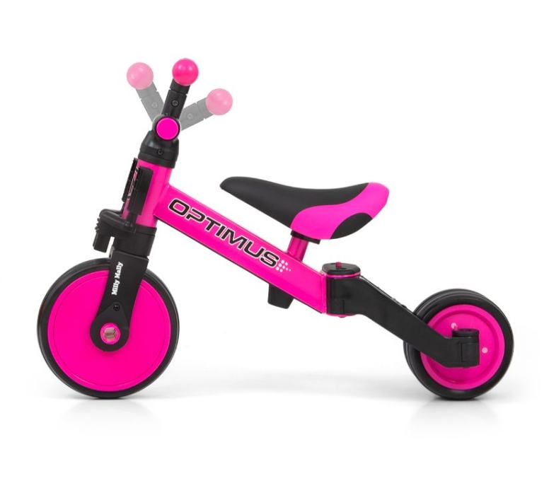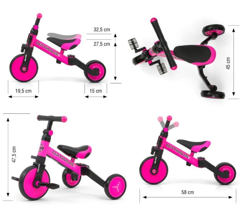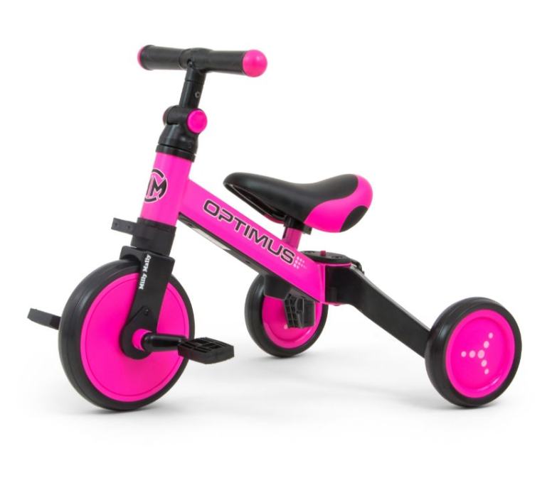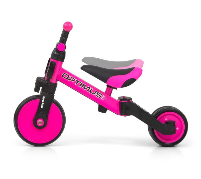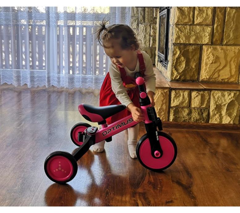 Optimus je dizajniran da postane jedan od najboljih izbora za prvo vozilo vašeg djeteta. Zahvaljujući stabilnoj konstrukciji na tri kotača, djetetu pruža odgovarajuću razinu sigurnosti i olakšava stjecanje novih vještina. Kada je dijete već savladalo osnove vožnje, možete mu dodati pedale ili ga promijeniti u klasični balance bicikl.