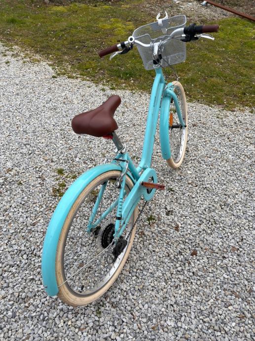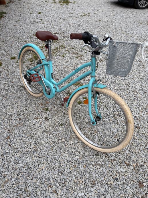 Prodajem dječji ženski bicikl s kotačima veličine 20 inča u lijepoj tirkiznoj boji. Bicikl ima klasičan dizajn s niskim ramom za lakše koristenje. Opremljen je praktičnom metalnom košarom na upravljaču za nošenje sitnica, kao i zaštitnim blatobranima na oba kotača. Bicikl ima mjenjac sa 6 brzina. Funkcionalan i spreman za vožnju.