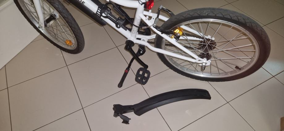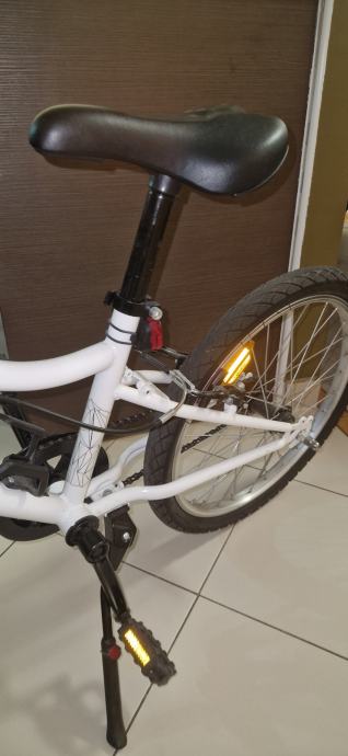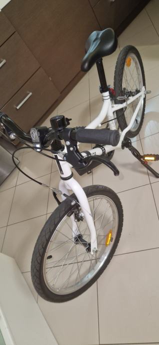 Prodajem dječji bicikl Rockrider za djecu 6-9g. Gume 20". Bicikl je malo vožen od strane jednog djeteta i čuvan unutar stana. Uz bicikl smo kupili dodatno prednje/zadnje svjetlo, nogar, nosač bočice, prednji/zadnji blatobran. Sjedalo podesivo po visini. Bicikl nije na brzine. Okvir bicikla je nehrđajući čelik. cijena 140 eur. (samo su dodaci 50eur).