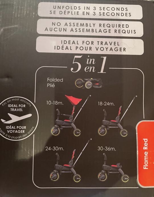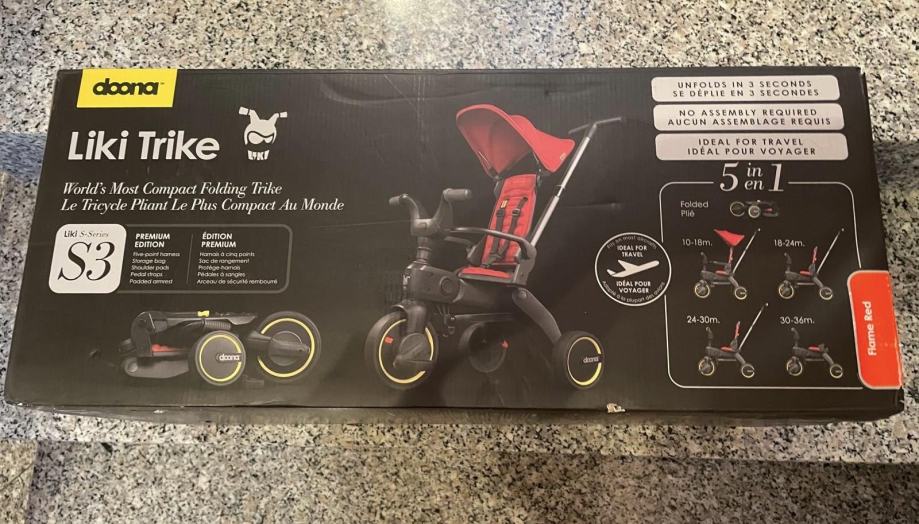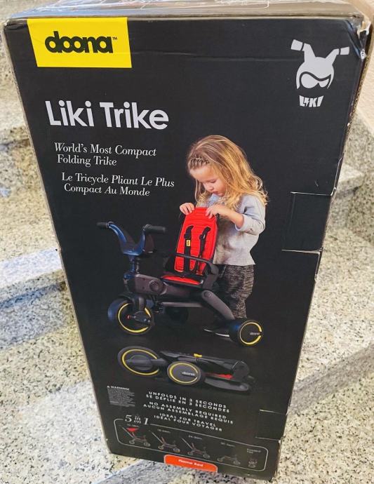 Doona Liki trike tricikl, jedini potpuno sklopivi tricikl pogodan za djecu do tri godine. Malo korišten, u izvrsnom stanju sa svim dodacima (na slikama je bez dodataka).