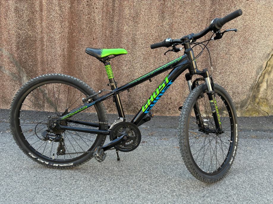 Prodajem dječji bicikl marke Ghost atraktivnog izgleda, Shimano Revoshift mjenjač 3 x 8 brzina (nazad Tourney, naprijed SIS index), amortizer RST, kvalitetno sjedalo, plastična zaštita od prljanja nogavice vozača, nogica, V-brake kočnice. Gume dobre, servisiran, spreman za vožnju.