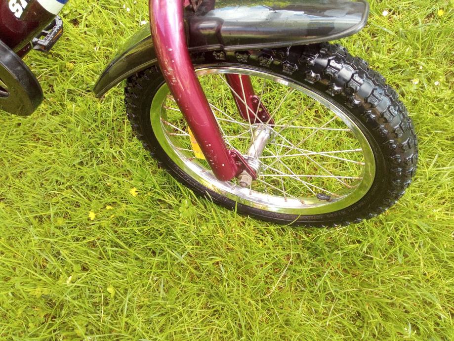 Odličan dječji bicikl sa kotačima veličine 16", bez brzina, prednja ručna, stražnja nožna kočnica. Odlične gume, sjedalo bez oštećenja, potpuno ispravan i spreman za vožnju!