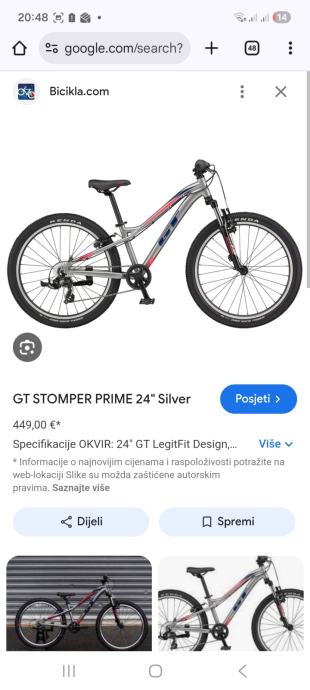 Prodaje se dječja bicikla GT Stomper prime 24.