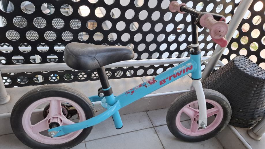 Prodajem dječju guralicu B'Twin s kotačima veličine 10''. Radi se o guralici u plavoj boji s ružičastim kotačima i bijelim okvirom. Za klince do 3 godine.