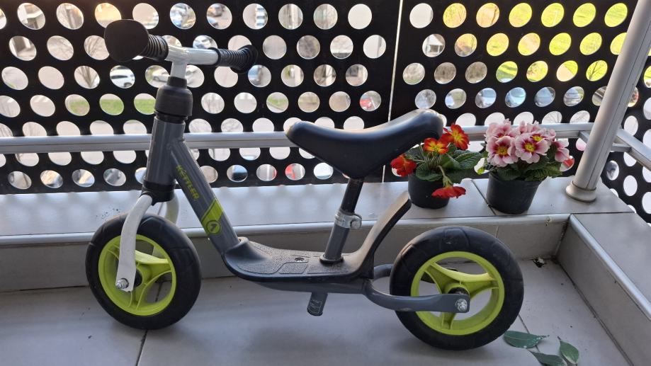Prodajem dječju guralicu Kettler u sivoj boji sa zelenim kotačima. Guralica je robusne izrade s podesivim sjedalom i upravljačem, što omogućuje prilagodbu visine kako dijete raste. Kotači su od čvrstog materijala, a okvir je lagan i čvrst.