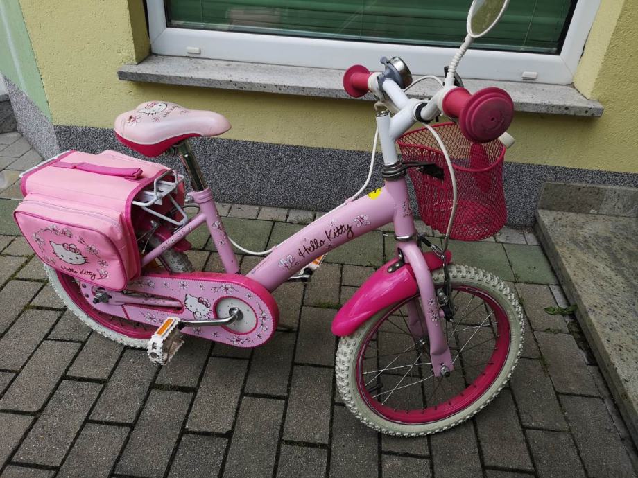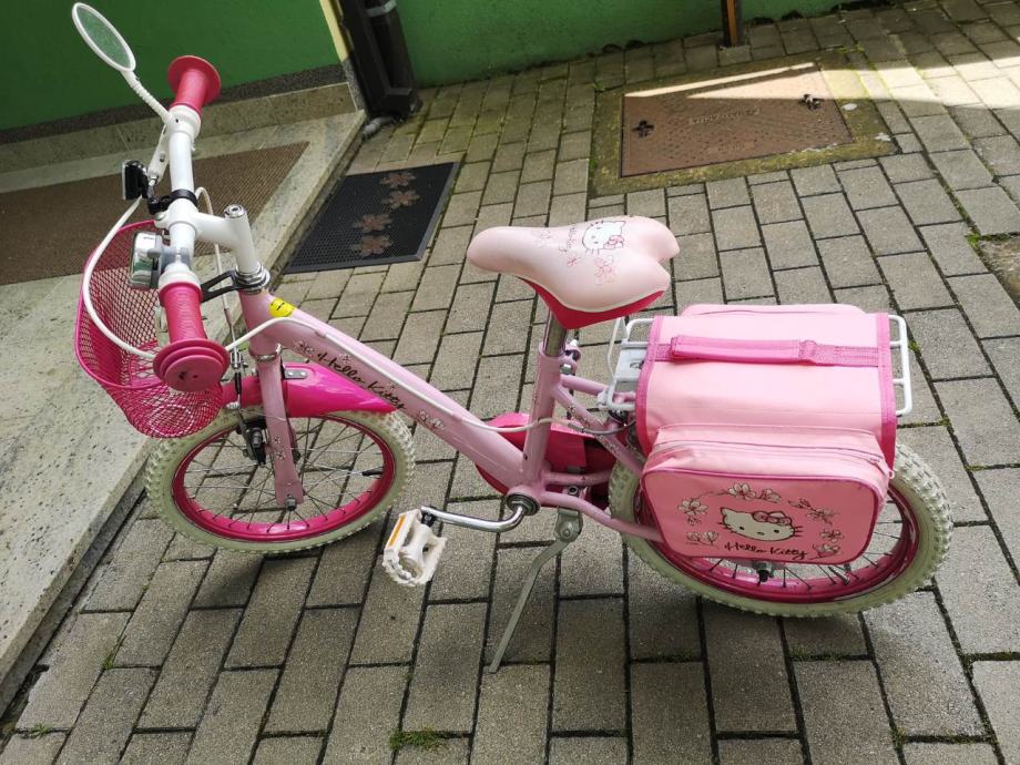 Hello Kitty bicikli 16", vidljivi mali tragovi korištenja ali u odličnom stanju. Uz bicikli idu i pomoćni točkići.