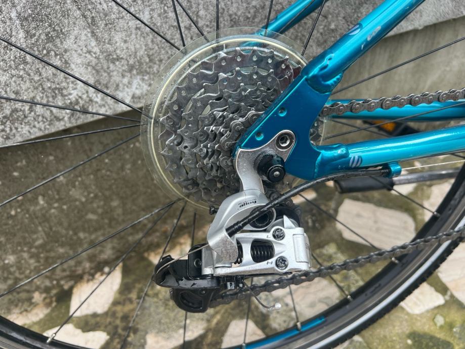 Sve radi savrseno i bicikl je spreman za voznju. Ima samo nekoliko sitnih ogrebotina na rami koje su samo estetske.