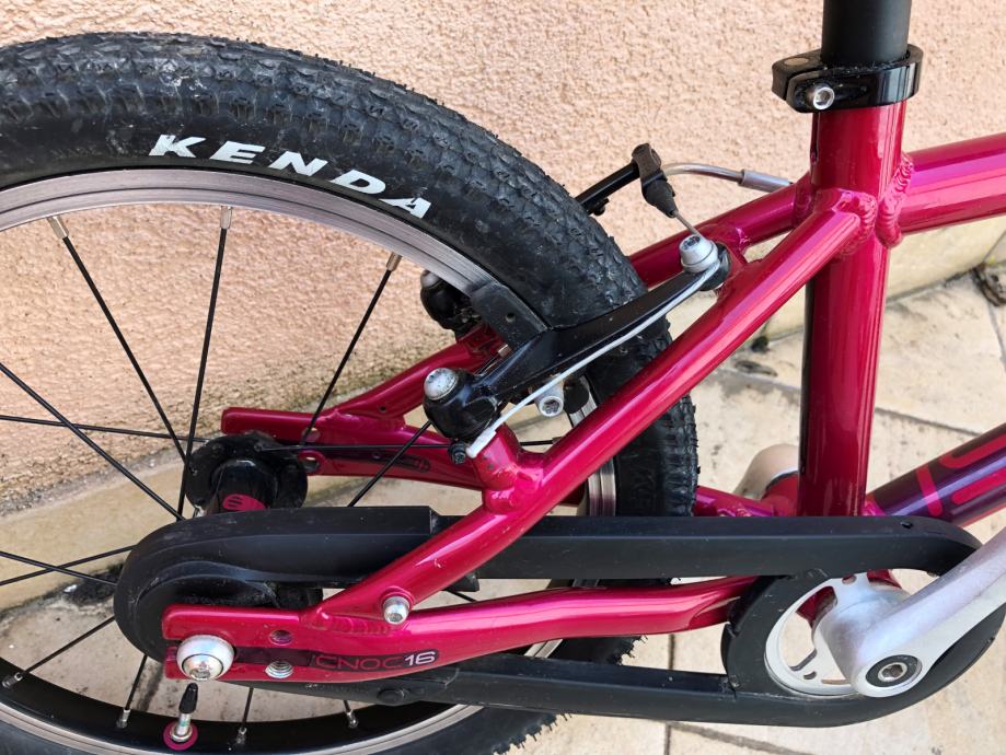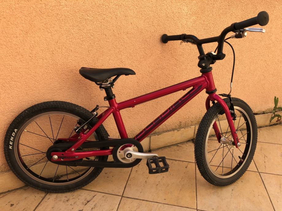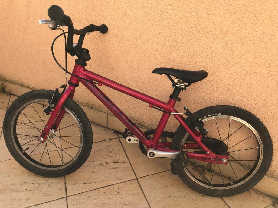 ISLABIKES proizvodi lagane bicikle, specijalno prilagođene za geometriju dječjeg tijela (https://www.islabikes.co.uk/product/bikes/cnoc/?attribute_pa_size=16). Lagani aluminijski okvir i idealno proporcionalni svi dijelovi za vaše dijete. Na ovako laganom biciklu dijete jednostavno uči voziti bicikl. Bicikl ima i prednju i stražnju ručnu kočnicu prilagođenu za dječju ruku i snagu. Posebna zaštita lanca tako da nema prljanja ni prstiju ni hlača.