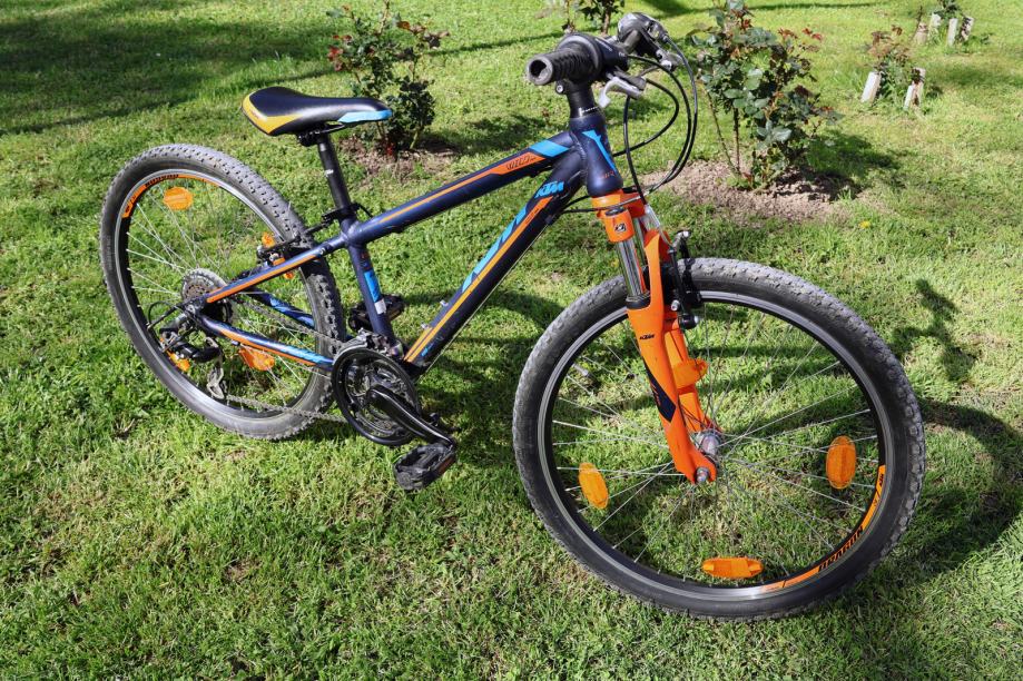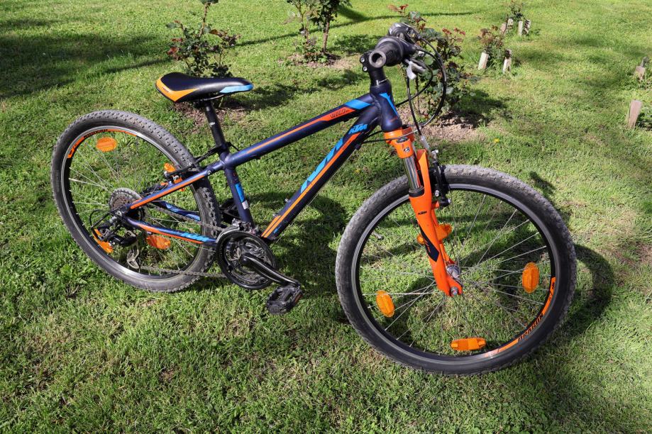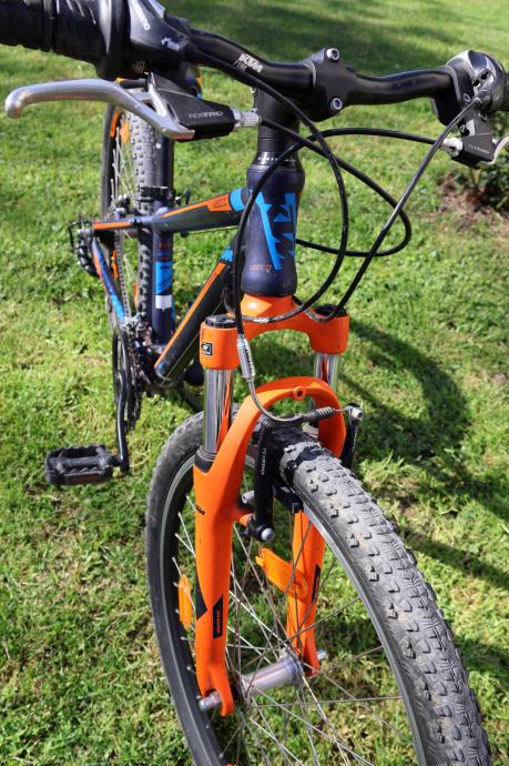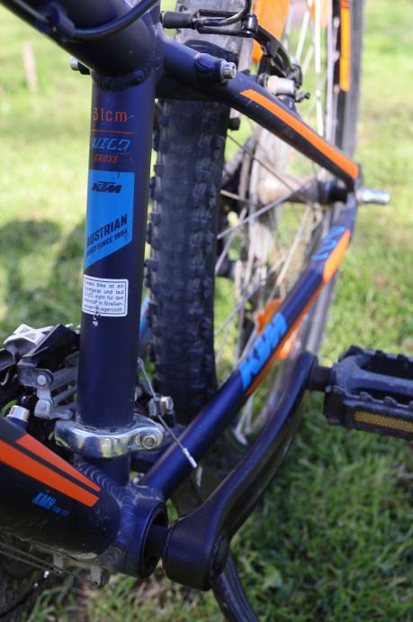 Prodajem očuvani KTM bicikl star 4g, veličina rame 31cm, kotači 24''. Model KTM Wild Cross. 18 brzina, mega range zupčanik radi lakšeg vožnje uzbrdo, V-break kočnice, Shimano.