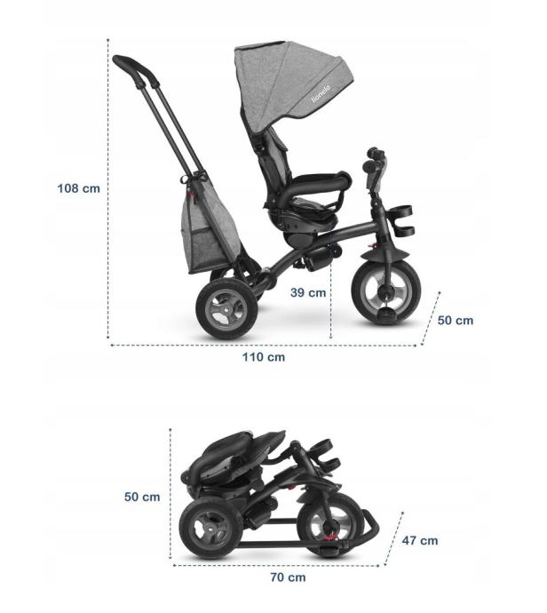 Prvo djeluje kao bicikl za šetnju sa slobodnim kotačem za najmlađe, a kad se dijete osjeća spremnim za prve neovisne vožnje Tris će se odmah pretvoriti u klasični bicikl s tri kotača.