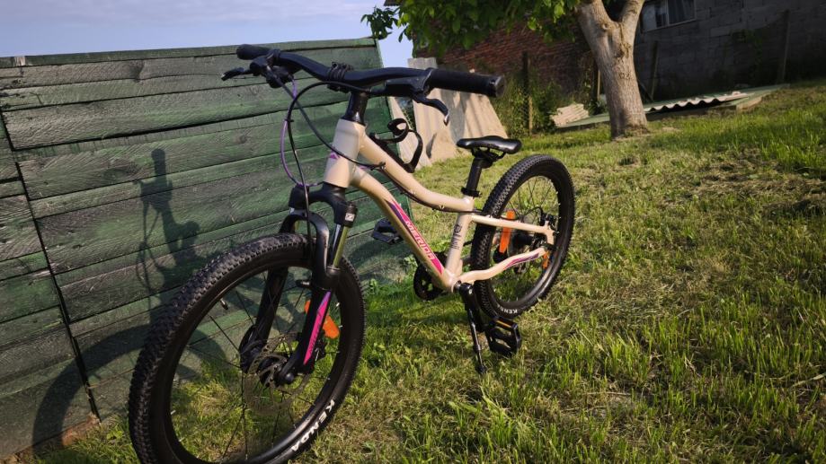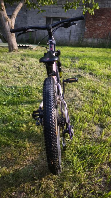 Bicikl je korišten 2 sezone vožnje po parku , gotovo da nema ogrebotine , kćer mi ga je prerasla iako ima sad 150cm i dalje ga može vozit kad podigne sjedalo do kraja .