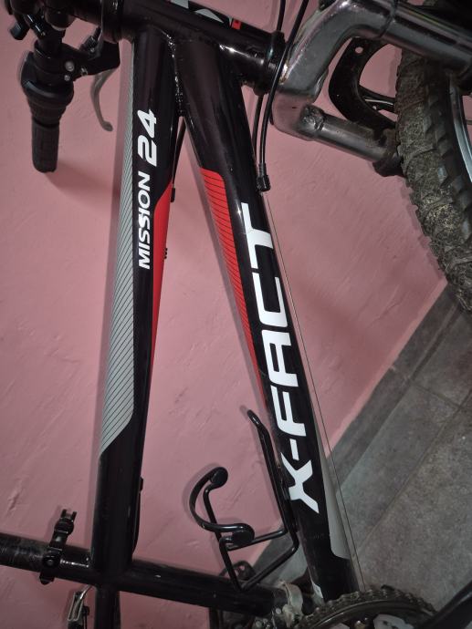 Prodajem dječji bicikl X-Fact Mission 24. Radi se o biciklu s kotačima promjera 24 inča, crne boje s crvenim detaljima. Okvir je u klasičnom MTB stilu, opremljen prednjom amortizacijskom vilicom, ručnim kočnicama i mjenjačem brzina. Upravljač je širok i ergonomski postavljen, a sjedalo je obloženo i podesivo po visini. Kotači su s aluminijskim naplatcima i reflektorima na žbicama.