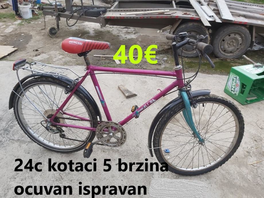 prodajem bicikli kotaci ravni 24 cola ima 5 brzina sve ispravno kao i obje kocnice pogon nema lufta sve ok s biciklom cijena 40€ fixno