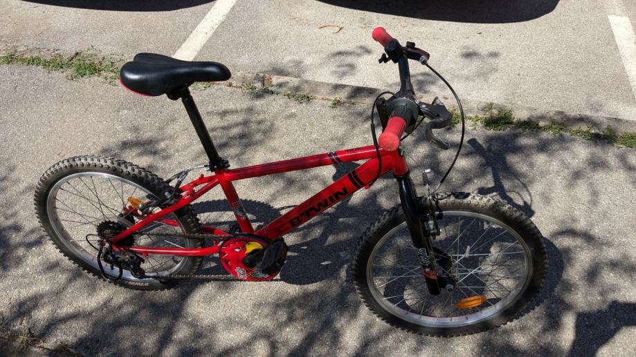 Prodaje se dječji bicikl, model BTWIN Racing Boy 320. Veličina kotača 20". Ima nogicu. Predviđen za djecu od 6-9 godina.