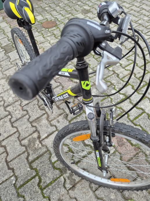 Prodajem rabljeni dječji bicikl NAKAMURA MX s kotačima od 24 inča. Bicikl je crno-zelene boje s kvalitetnim kočnicama i udobnim sjedalom. Idealan je za djecu koja žele istraživati okolinu i uživati u vožnji. Kupljen novi u Intersportu, vrlo malo vožen, garažiran svo vrijeme... Razlog prodaje je kupovina većeg bicikla... Imamo u ponudi još jedan - Rockrider 300...