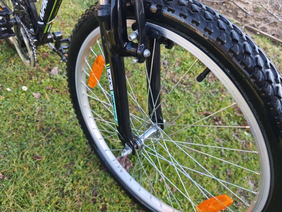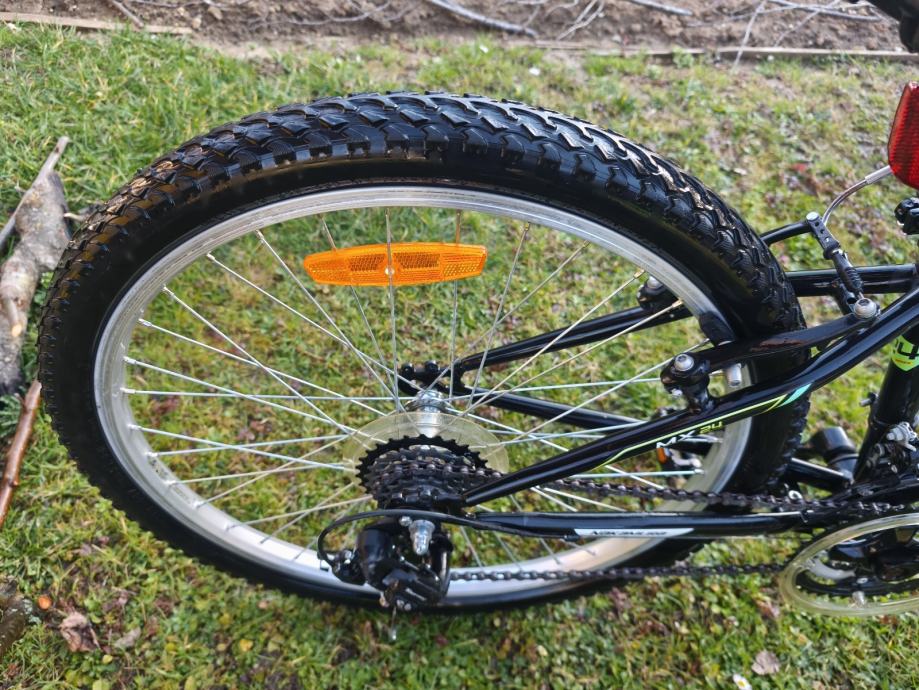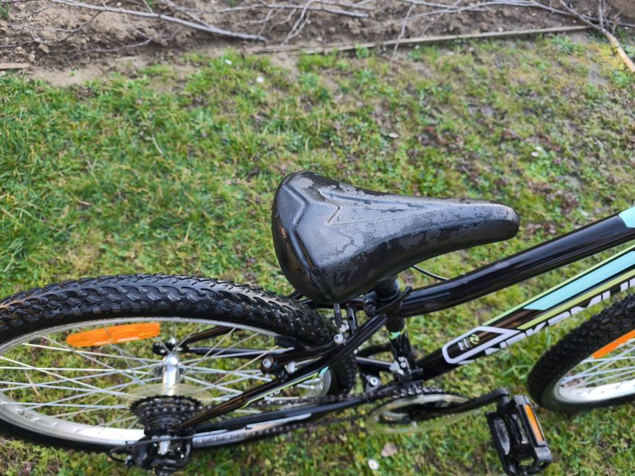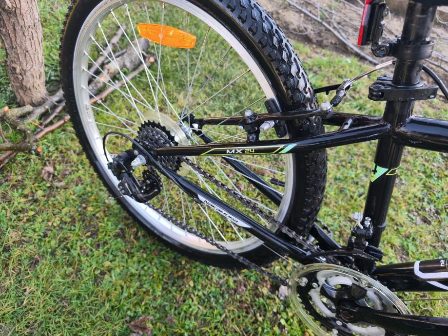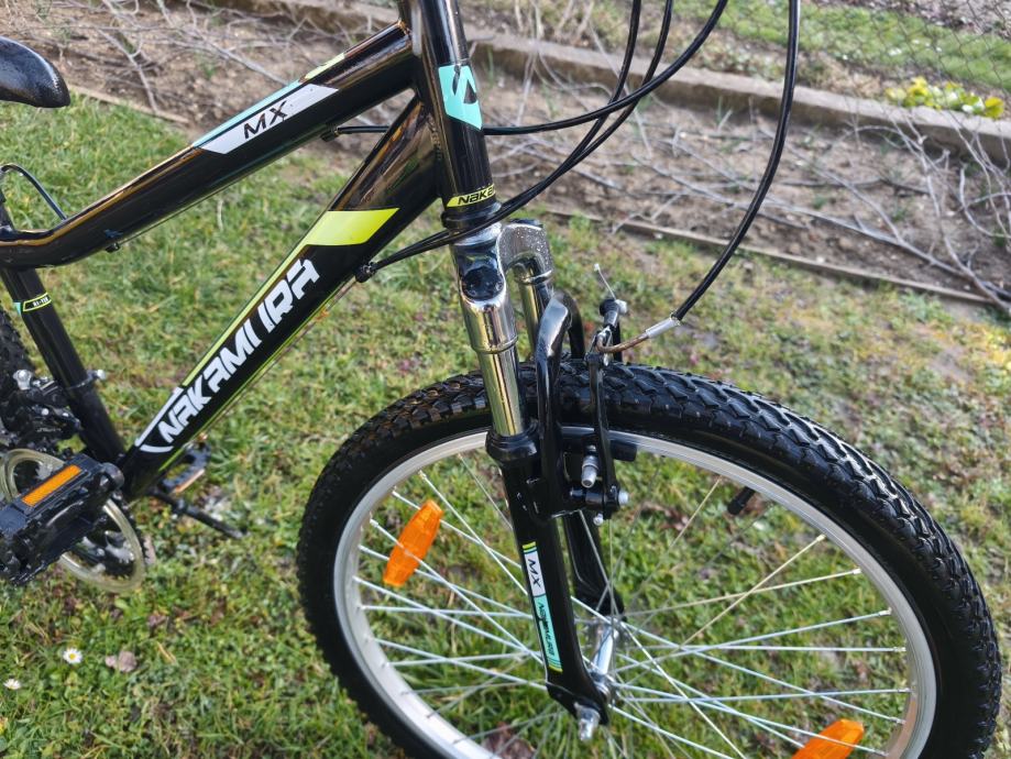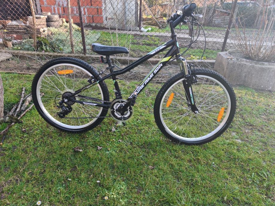 Dječji bicikl Nakamura(Francuska), kupljen u Intersportu, kotači veličine 24", 18 brzina sa potpuno ispravnim Shimano Tourney mjenjačem sprijeda i straga. Prednja suspenzija ispravna!