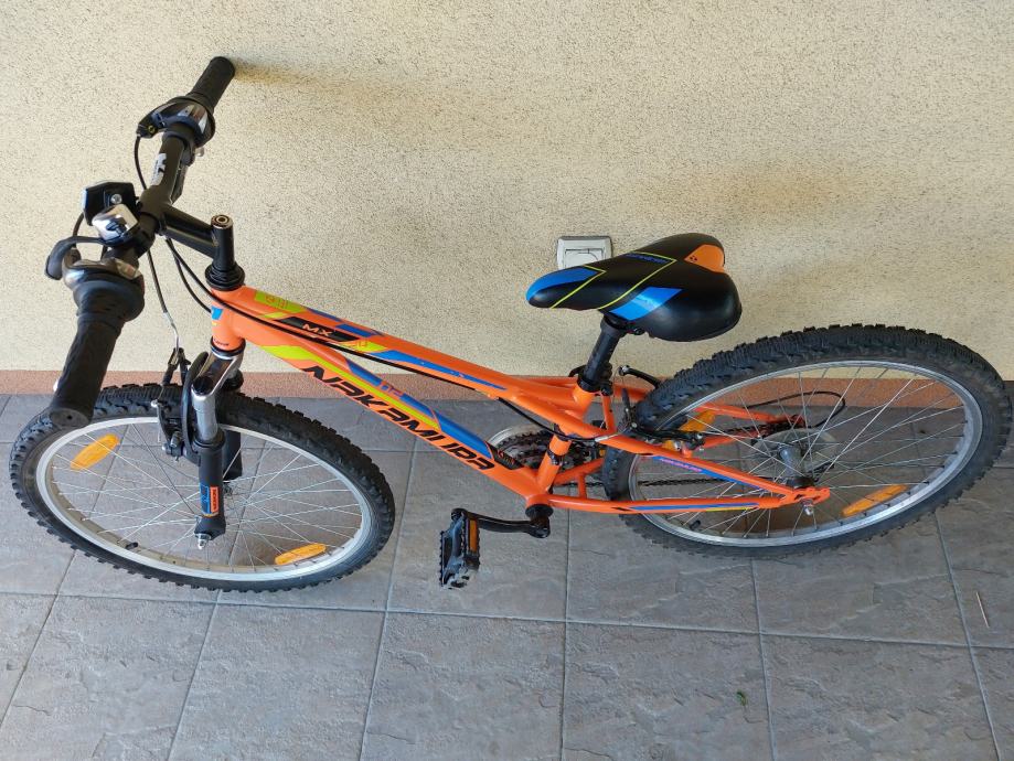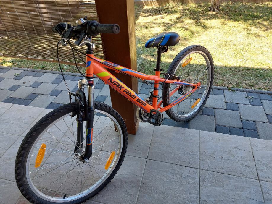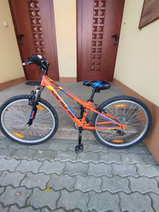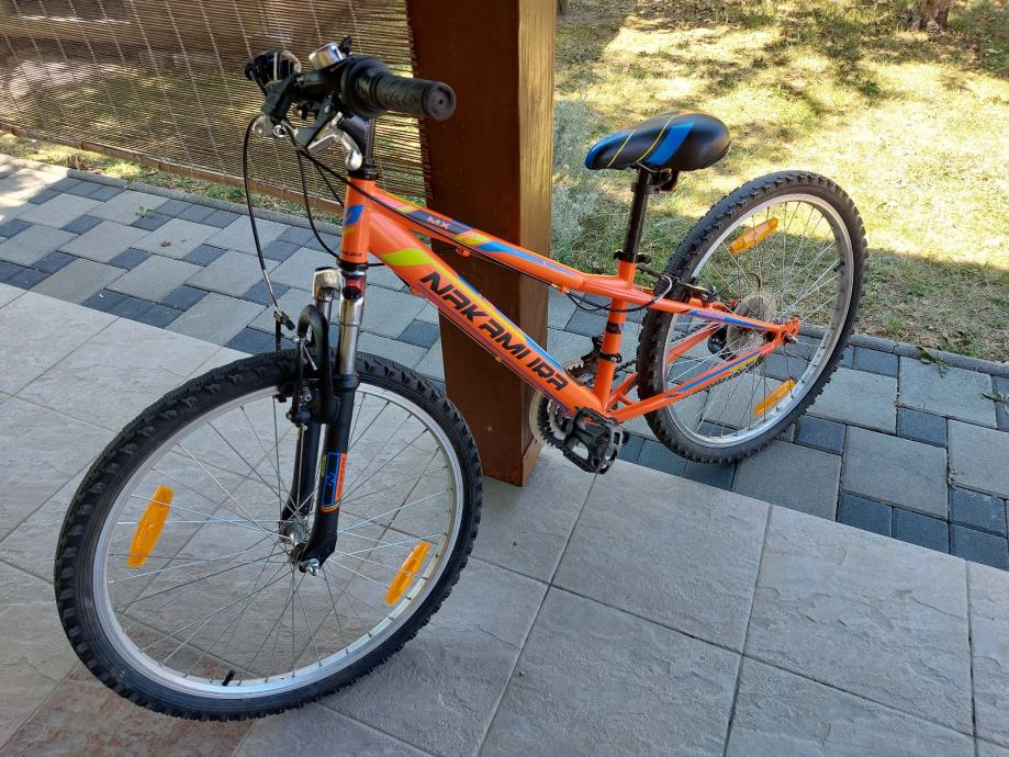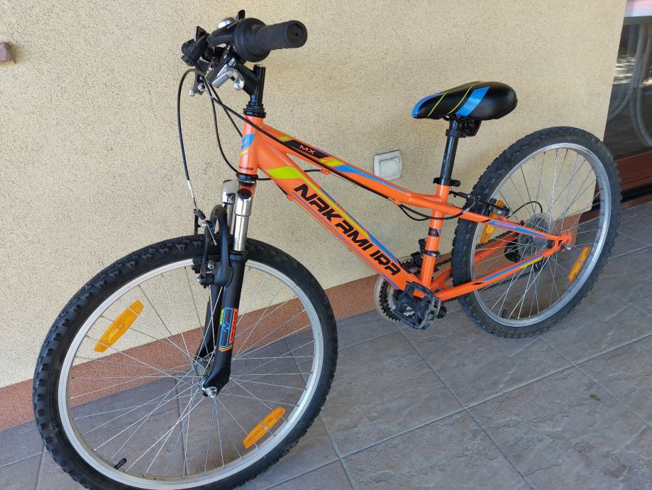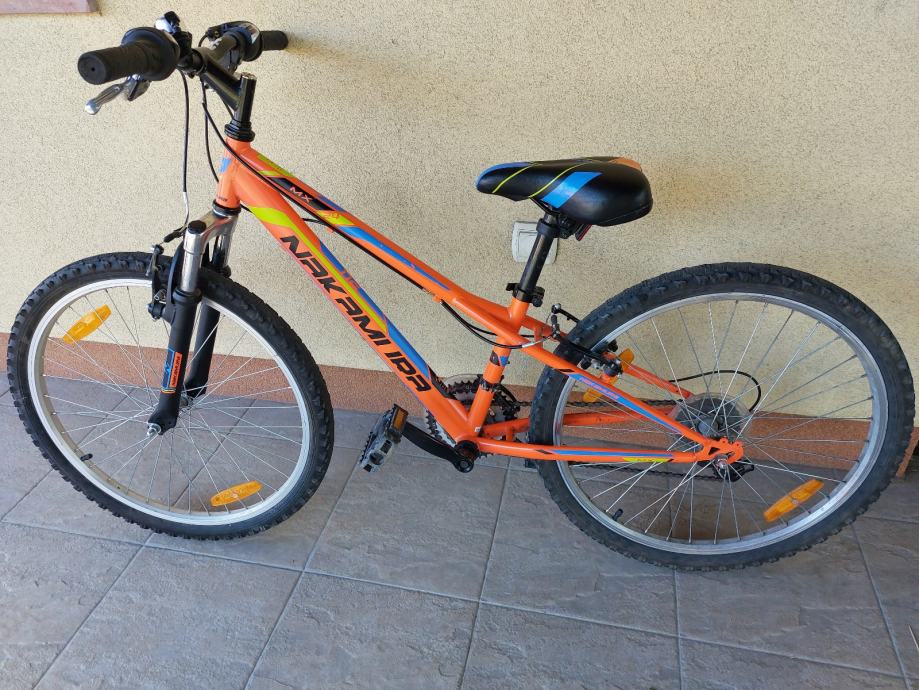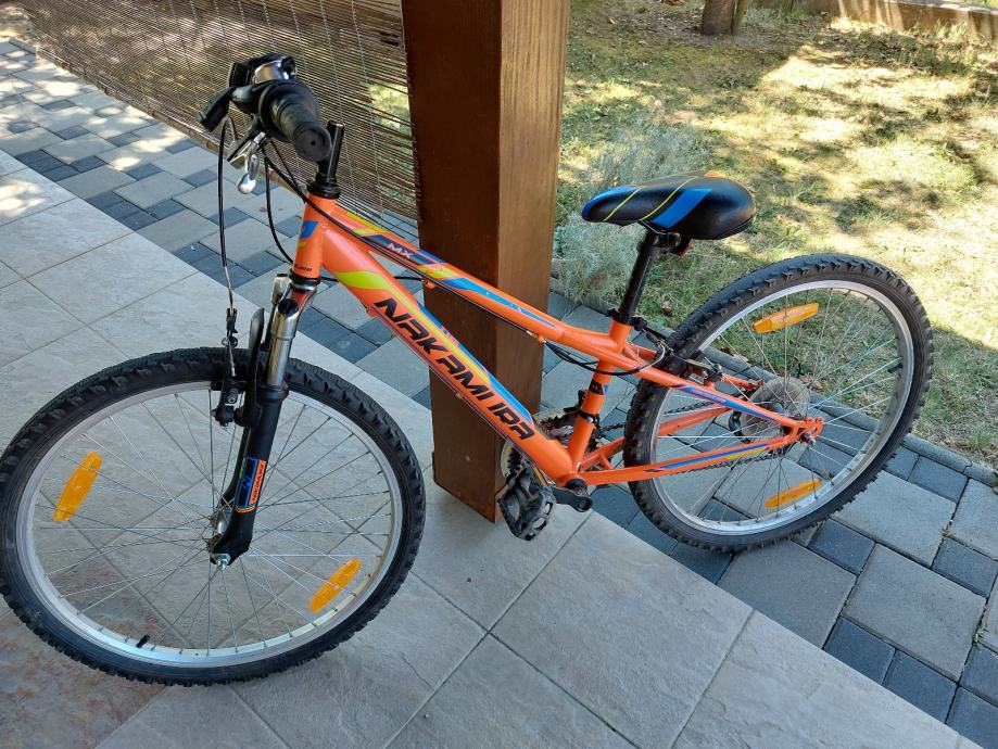 Dječji brdski bicikl NAKAMURA, kotači 24 inča, 18 brzina, Shimano mjenjači i lanac. Ispravan, u voznom stanju, vidljivi tragovi korištenja. Nema nogaru niti lokot. Prodajemo jer smo ga prerasli.