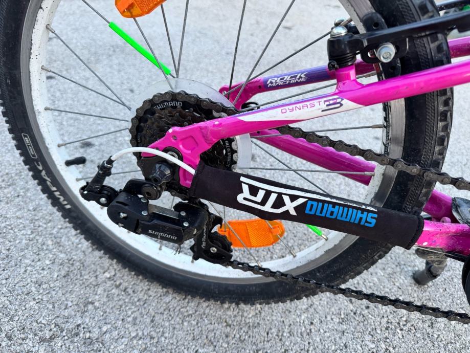 Prodajem dječji bicikl Rock Machine Catherine s kotačima veličine 20 inča, ružičaste boje. Bicikl dolazi s Shimano mjenjačem i RevoShift ručicom za mjenjanje brzina s 6 stupnjeva prijenosa, što osigurava lagano i pouzdano mijenjanje brzina. Okvir je lagan, a bicikl je prilagođen manjim vozačima od 130-150 cm