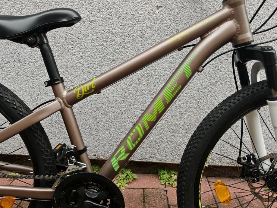 Prodajemo aluminijski dječji bicikl Romet Rambler Dirt 24" (za dijete od cca 7-11 god ) .Bicikl je u odličnom stanju, uredno servisiran i tehnički ispravan. Kao nov. Ima 18 brzina shimano. Moguća prodaja na kartice do 12 rata bez kamata. Cijena je fiksna. Na rabljeni bicikl dajemo garanciju od 6 mjeseci. Dostava osigurana u kartonskoj kutiji za područje HR po cijeni 10eura( za otoke 15eura). Pogledajte i naše ostale oglase na našem njuškalo linku. Trgovina Extreme sport.