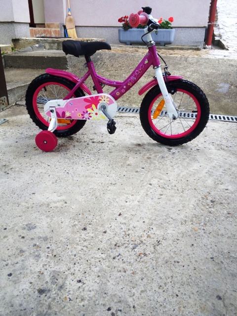 Super sladak dječji bic, kotači veličine 14", blatobrani, pomoćni kotači, prenja ručna, stražnja nožna kočnica, potpuno ispravan, minimalno korišten, maksimalno uščuvan! Gume odlične, sjedalo bez oštećenja, SUPER STANJE!!!