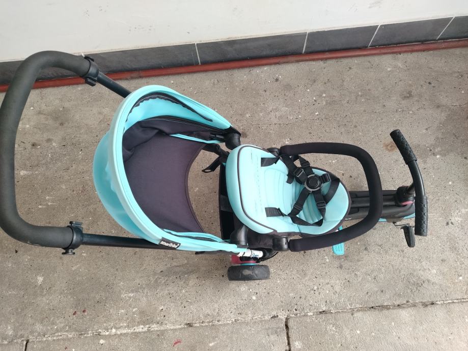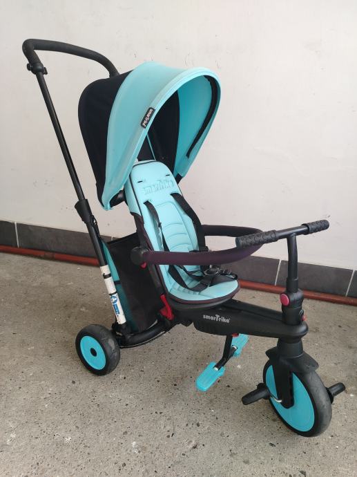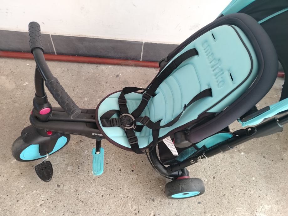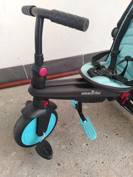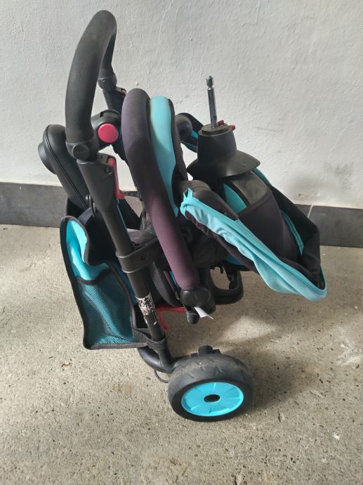 Moze se sklopiti radi lakšeg transporta i nožna kočnica se teze otkvačiva/otključava inace sve radi.