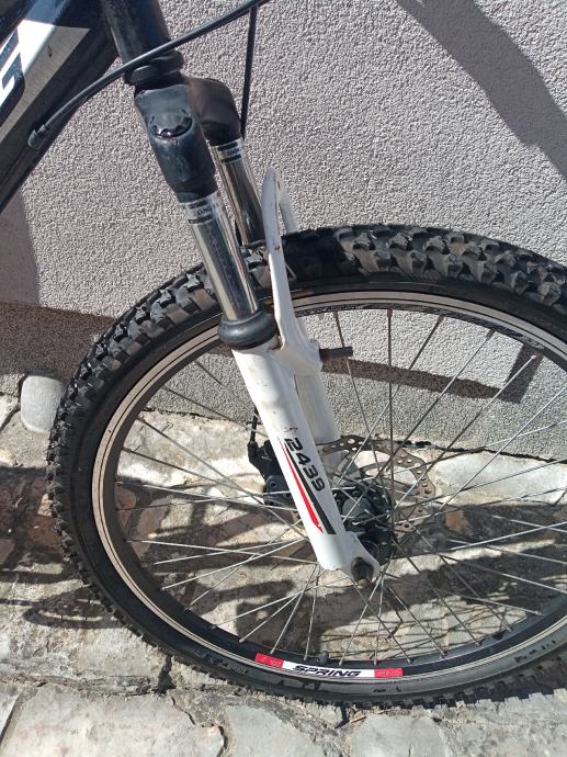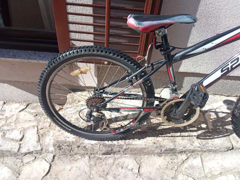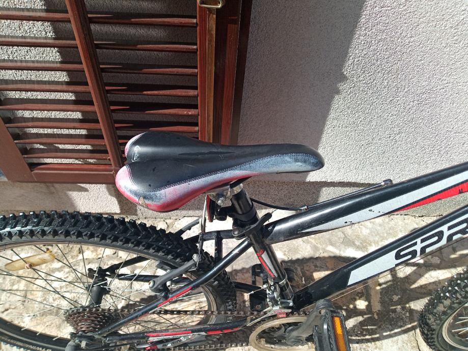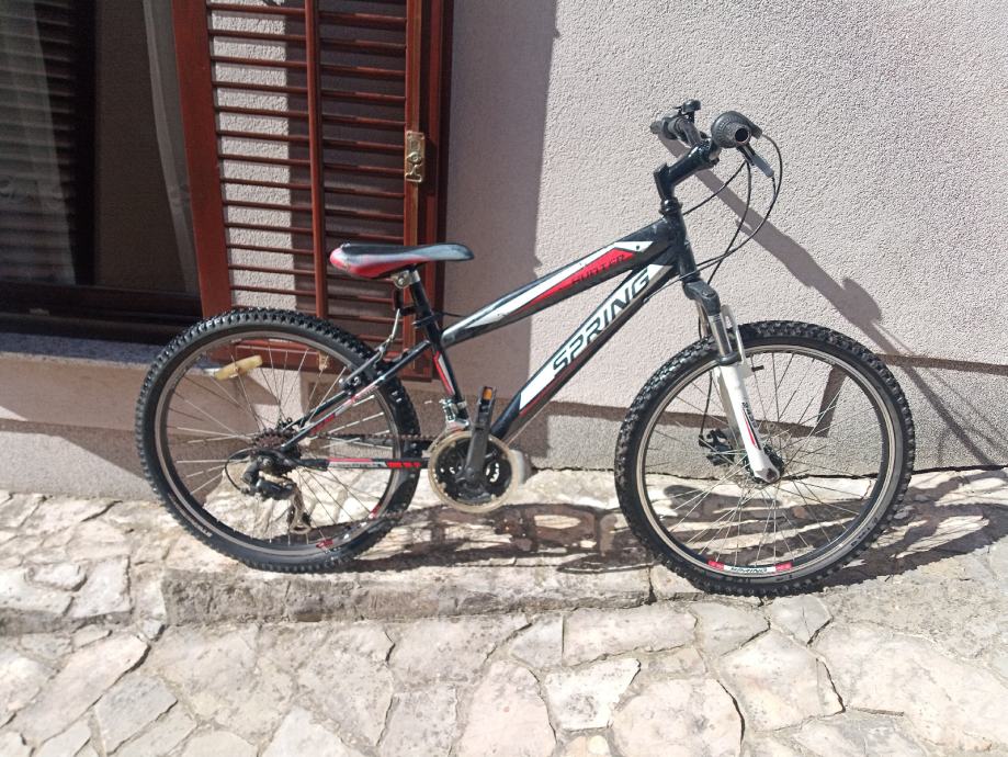 Dječji bicikl Spring, srednje veličine, kotači veličine 24", ispravan Shimano prijenos(21 brzina), prednja suspenzija ispravna, prednja disk kočnica ispravna.